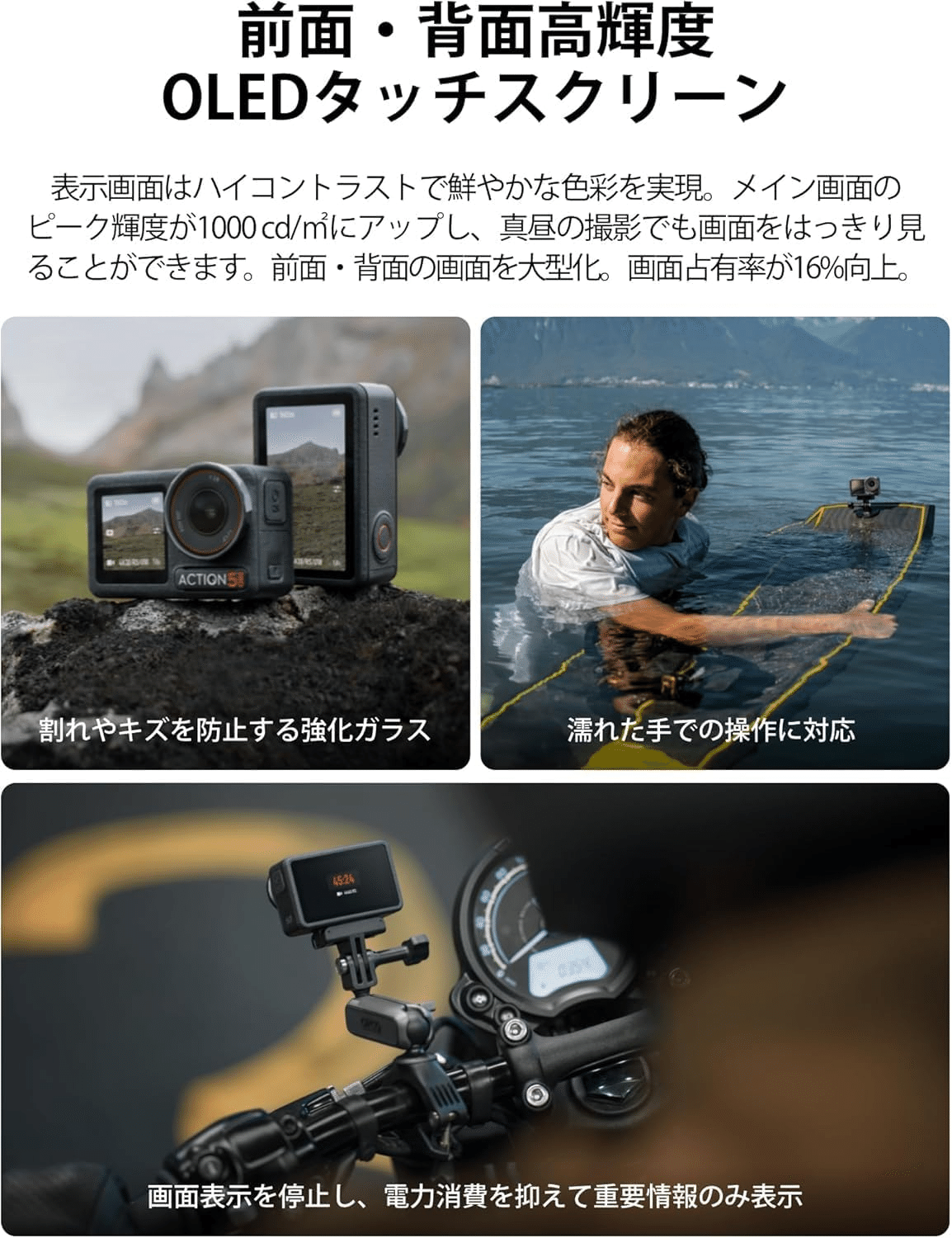 DJI Osmo Action 5 Pro エッセンシャルコンボは、アクションカメラの新たなスタンダードを築く一台です。1/1.3インチの大型センサーにより、4K/120fpsの滑らかで鮮明な映像を撮影可能。防水性能や被写体トラッキング、手ブレ補正機能を備え、スポーツやvlogに最適です。デュアルOLEDタッチ画面で操作も簡単。軽量で持ち運びやすく、どんな冒険でも高品質な映像を記録できます。このカメラは、アクティブなライフスタイルを送る人にぴったりの選択肢です。