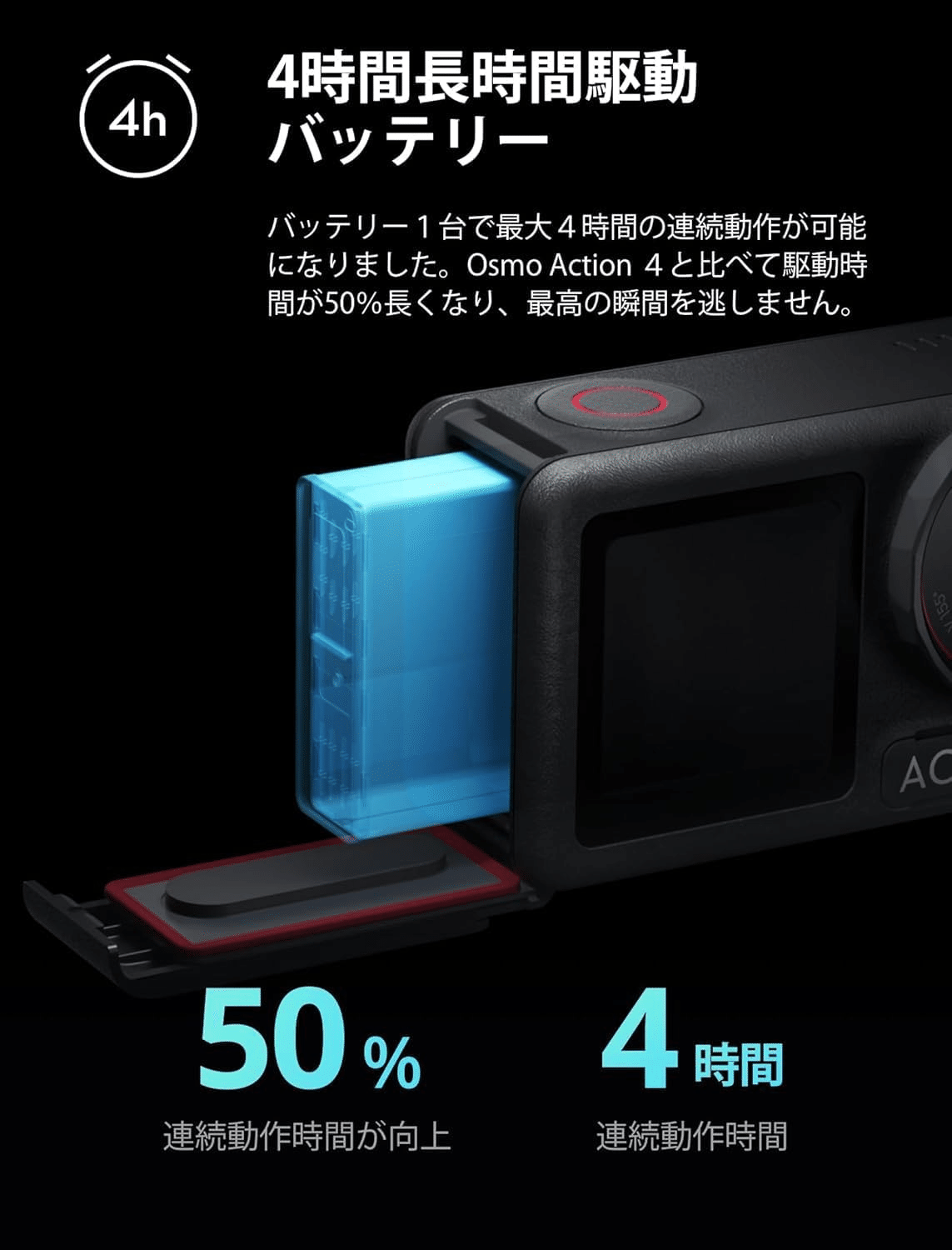 アクセサリー互換性 Action 3および4のバッテリーと互換