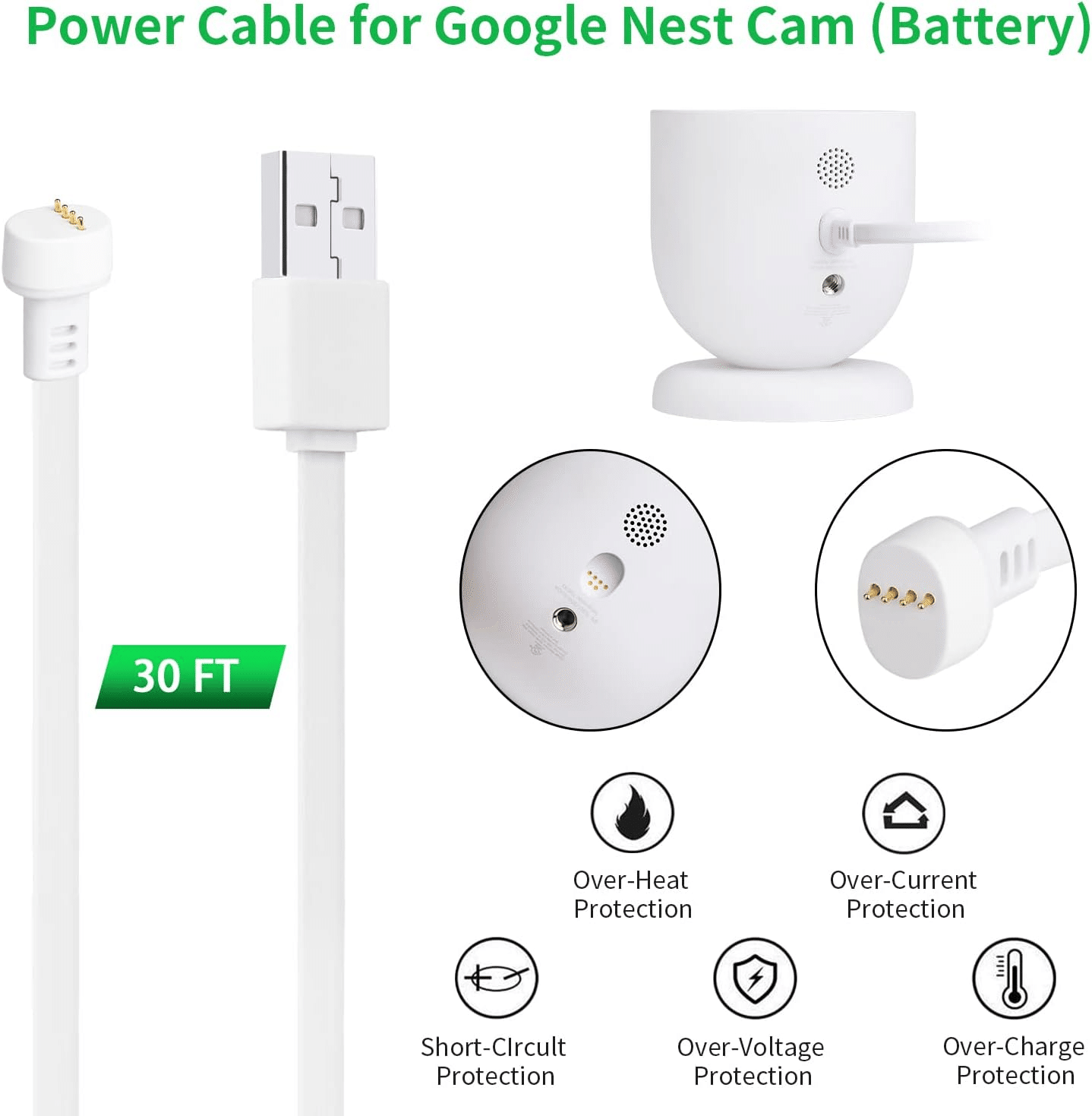 • Title wochel Google Nest Cam(バッテリー)対応電源ケーブル 30フィート/9.1m 防水アウトドアケーブル ネストカメラを継続的に充電します (ホワイト)
