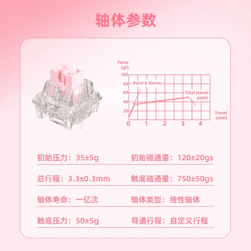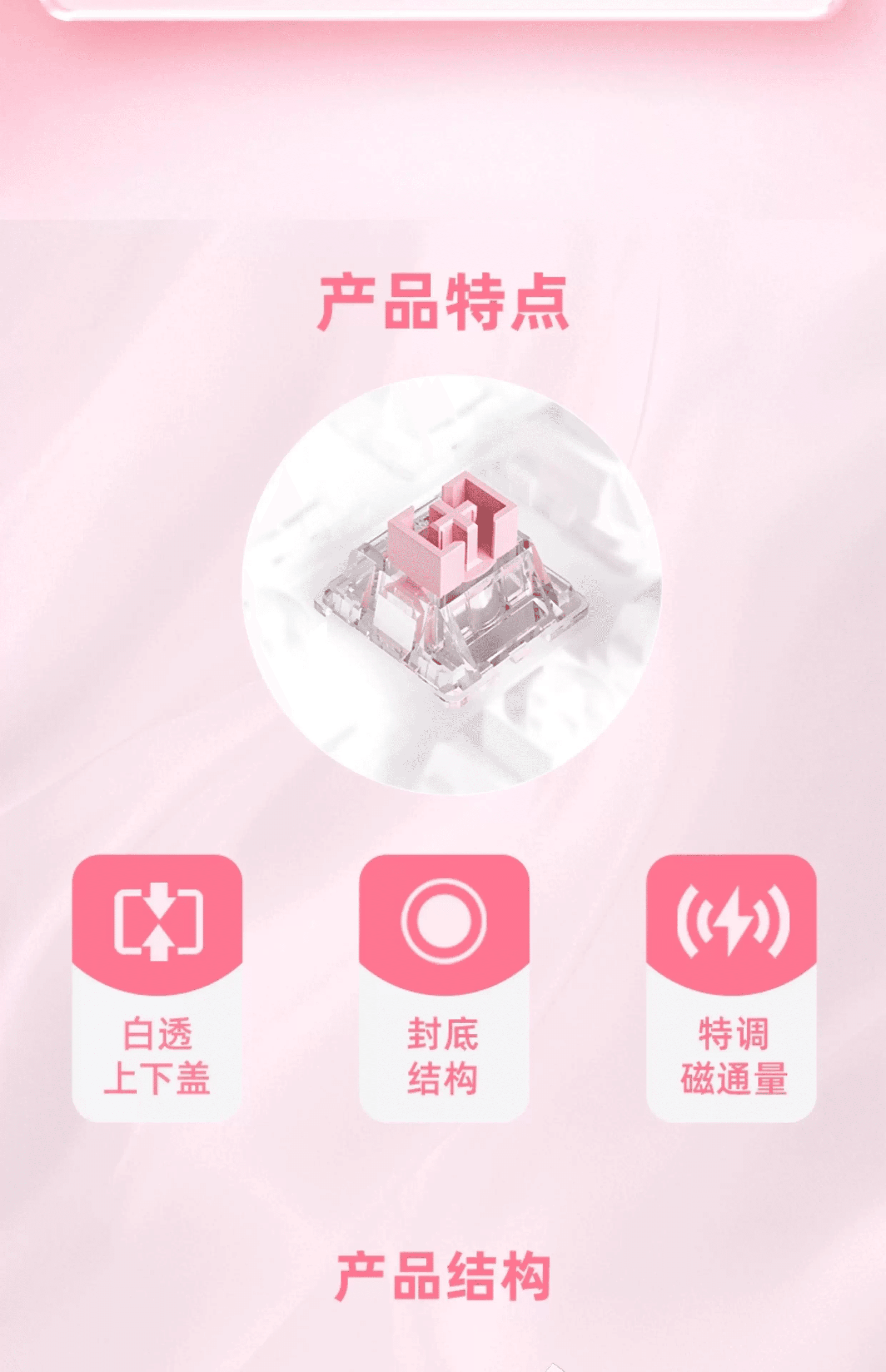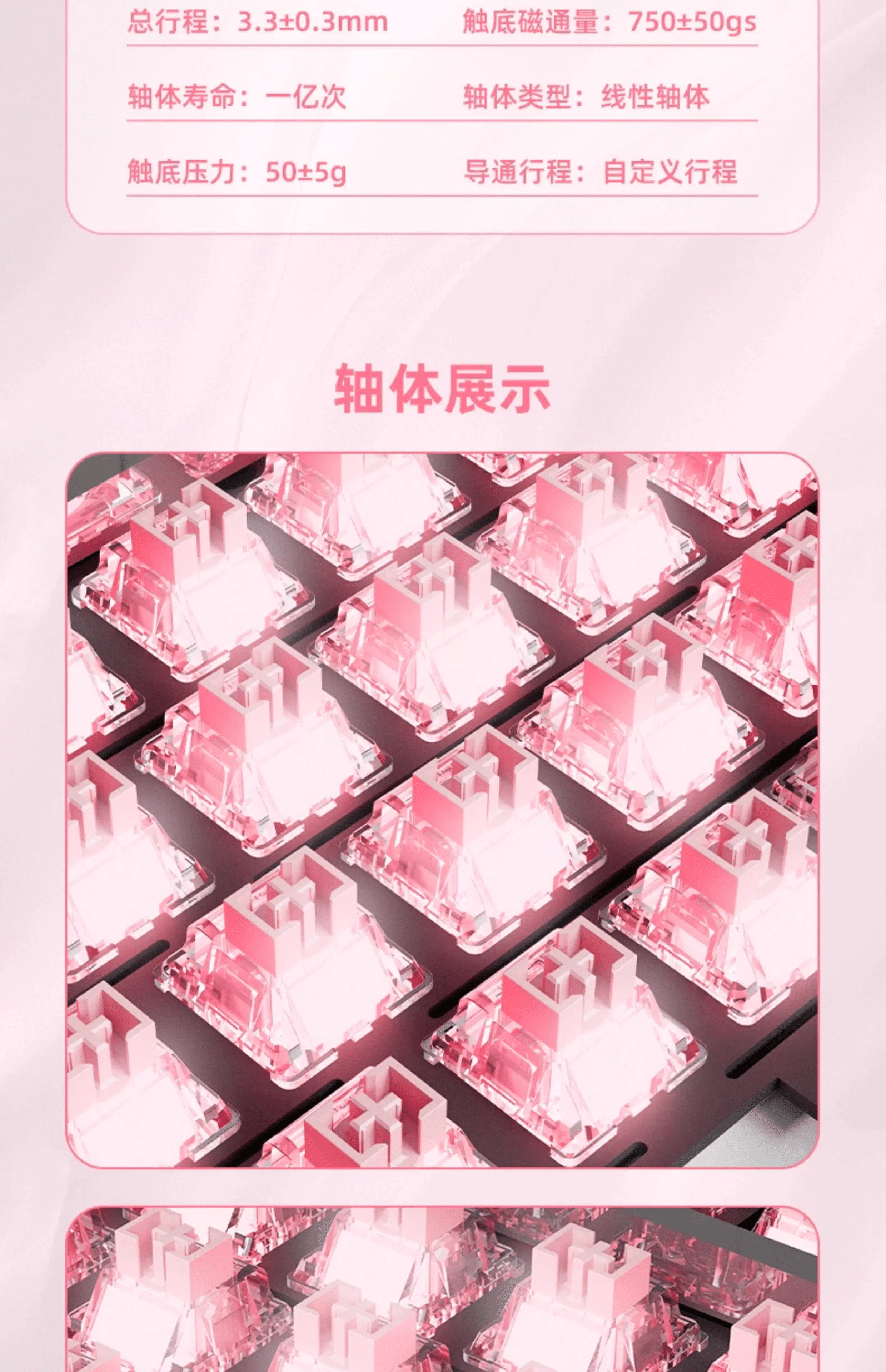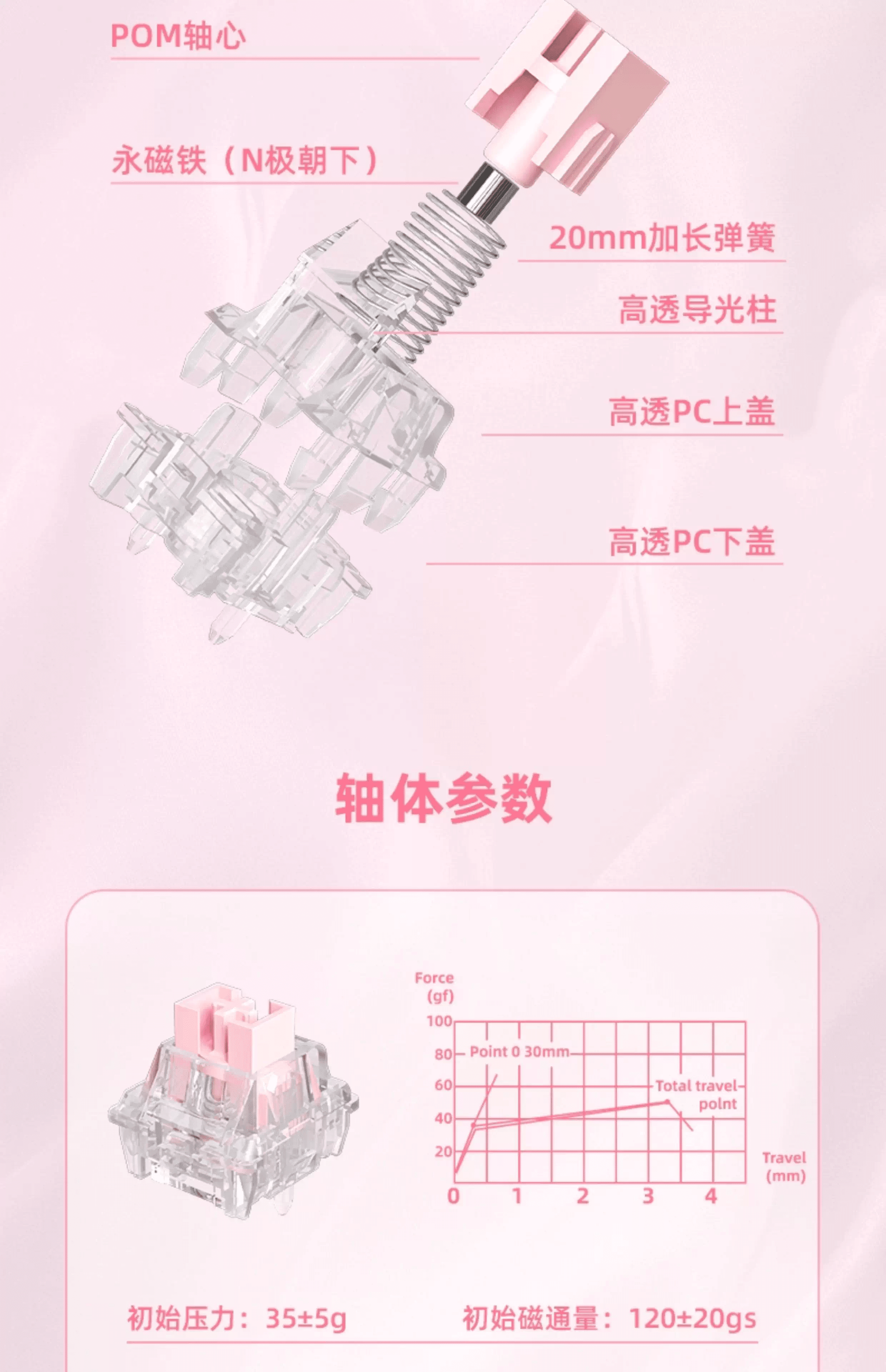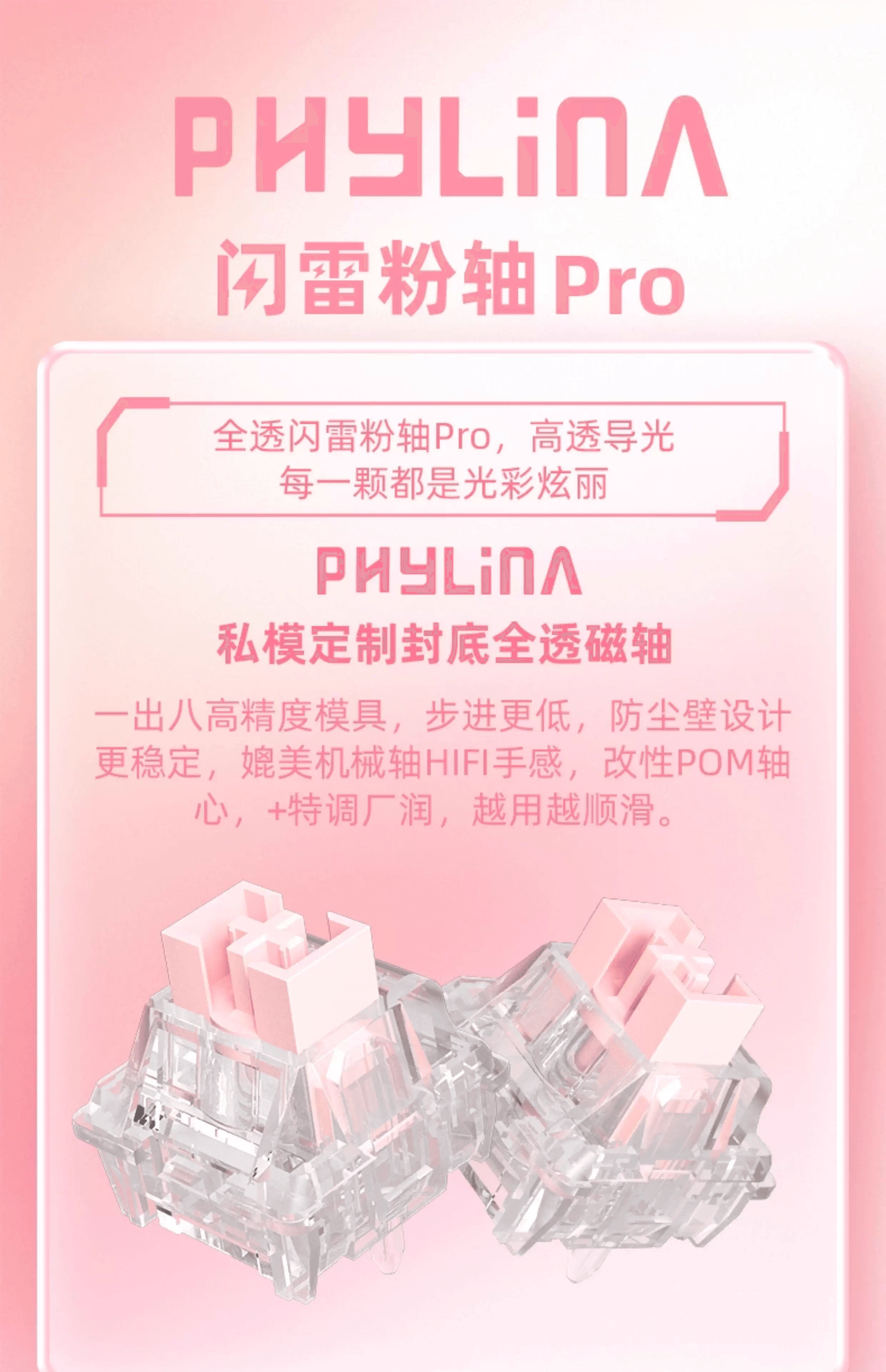 PHYLINA闪雷磁轴体封底高性能RT精度0.003 RGB透亮导光柱磁轴键盘