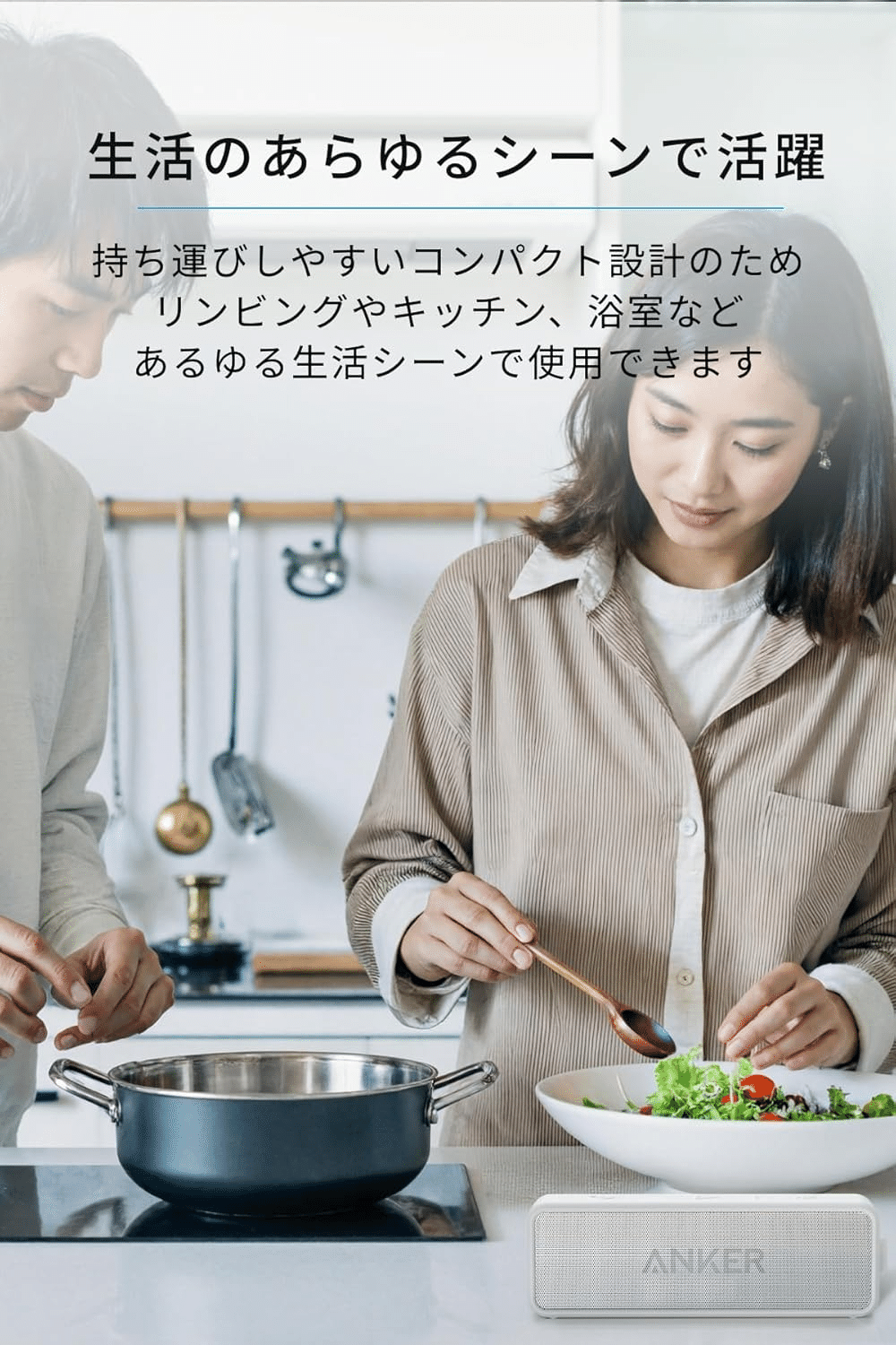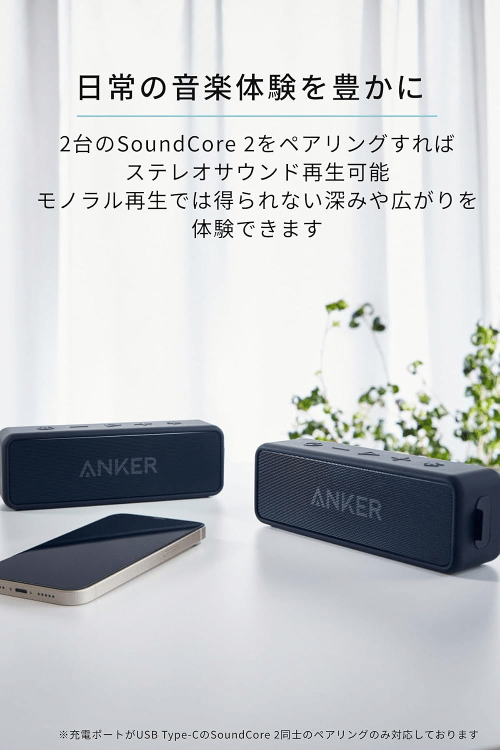 Anker Soundcore 2は、コンパクトながら12Wの迫力サウンドが魅力のBluetoothスピーカー。24時間再生とIPX7防水でアウトドアや長時間使用に最適。BassUpで低音も強化!