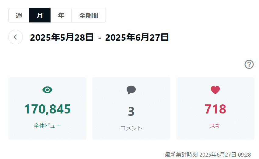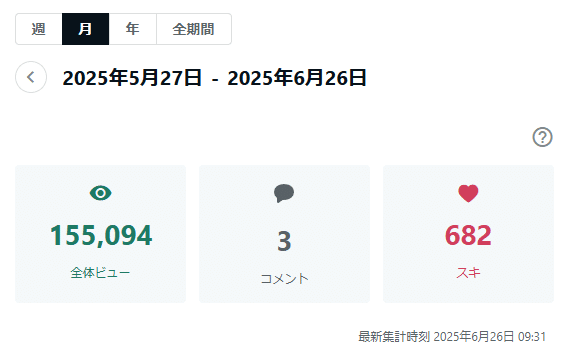 コメントが少ないのがネックですが、月間のアクセス数が15万を超えました✨
