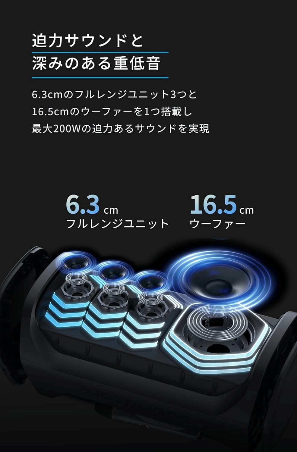 迫力サウンドと深みのある重低音 – Anker Soundcore Rave 3S: AI搭載でカラオケも楽しめる高出力Bluetoothスピーカー
