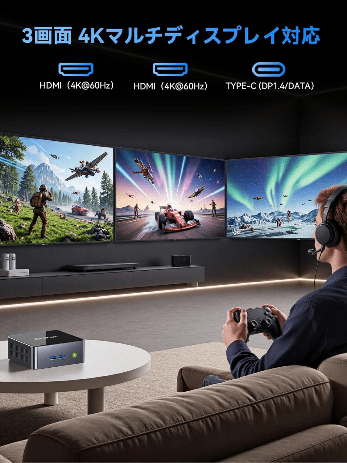GMKtec M3 Ultraは、最新の第12世代インテルCore i7-12700Hを搭載した高性能ミニPCで、コンパクトながらパワフルな処理能力を誇ります。64GBのDDR4メモリと16TBの拡張可能なSSDを備え、ゲintregrity-checksum: ビジネス用途やゲーミング、動画編集など幅広い用途に対応。Wi-Fi 6やBluetooth 5.2、2.5Gbps LANポートを搭載し、高速通信も実現します。4K出力対応で、複数のディスプレイにも対応可能です。このミニPCは、省スペースで高効率な作業環境を提供し、静音設計で快適な使用感を約束します。