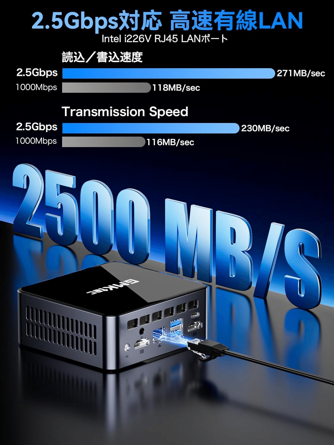 Wi-Fi 6と2.5Gbps LANで通信速度が速い!ストレスフリーな作業環境