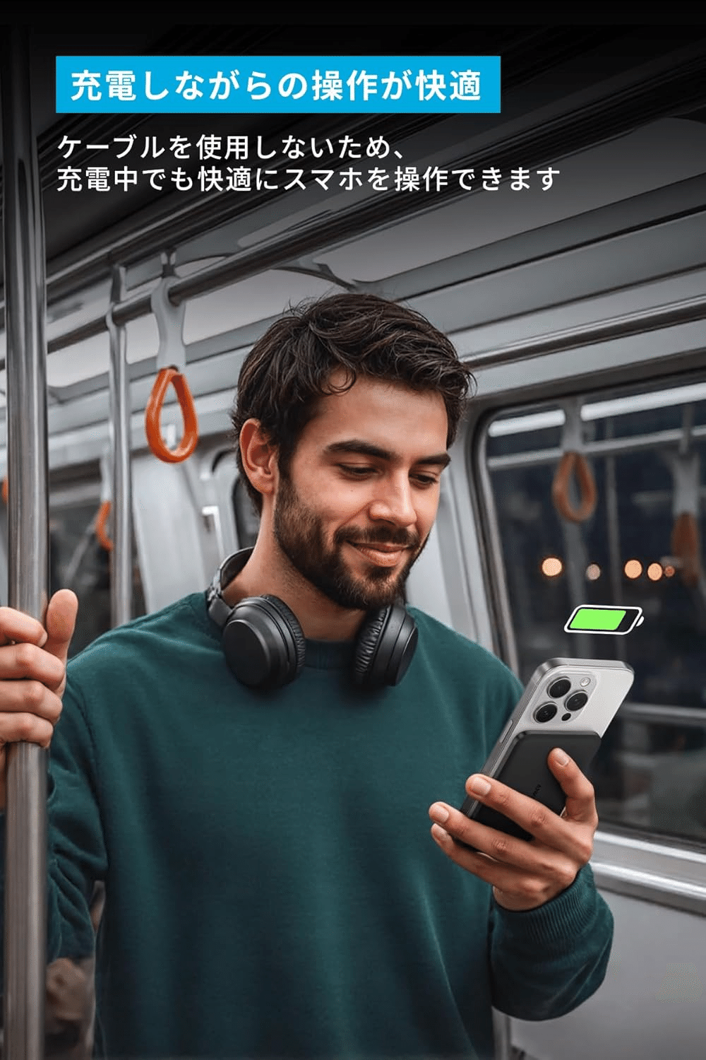 Anker Nano Power Bank (5000mAh, MagGo, Slim)は、薄型で軽量なデザインが魅力のモバイルバッテリーです。約8.6mmのスリムなボディは、ポケットや小さなバッグに簡単に収納でき、持ち運びに最適。Qi2認証による15Wの高速ワイヤレス充電は、iPhoneやPixel 10シリーズを迅速に充電し、忙しい日常や旅行で活躍します。Anker独自のWireless PowerIQ技術とActiveShield 2.0により、効率的な充電と安全性を両立。グラフェンやデュアルNTCチップによる優れた熱管理で、充電中の発熱を抑え、快適な使用感を提供します。ただし、ワイヤレス充電の変換効率により実効容量は約2,750~3,250mAh程度になる点は留意が必要です。MagSafe対応ケースとの相性が良く、磁力も強力でズレにくいのもポイント。ブラックのシンプルなデザインは、ビジネスシーンからカジュアルまで幅広く対応。アプリ連携でバッテリー状態を管理できる点も、テクノロジー好きなユーザーには嬉しい機能です。コンパクトさと高性能を求める方に、非常におすすめの製品です。
