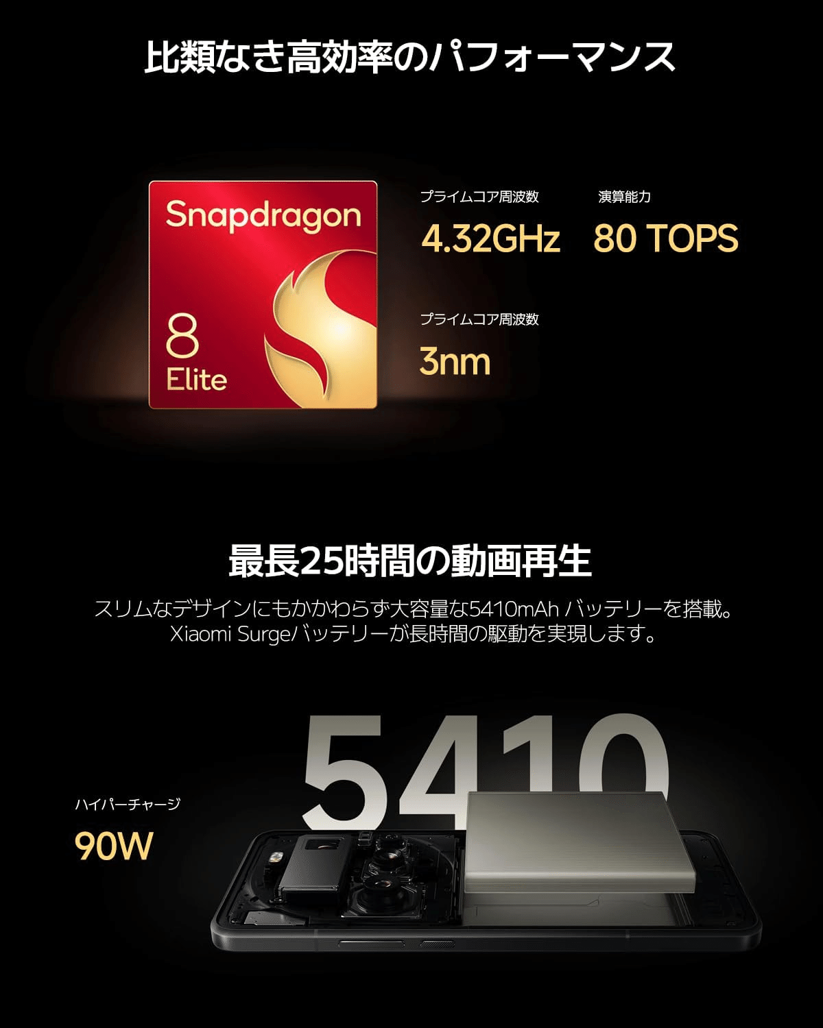 シャオミの最新フラッグシップ、Xiaomi 15 Ultra 16GB+1TB シルバークロームは、ライカ共同開発の1インチメインカメラと2億画素超望遠レンズを搭載したスマートフォンです。Snapdragon 8 Eliteによる圧倒的なパフォーマンスと、6.73インチの高輝度AMOLEDディスプレイで、写真撮影からゲーミングまであらゆるシーンを極めます。IP68防水防塵や90W急速充電にも対応し、シルバークロームの洗練されたデザインが魅力。応募でフォトグラフィーキットがプレゼントされるキャンペーンも見逃せません。