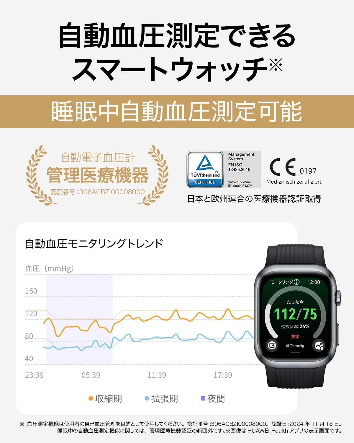 自動血圧測定できるスマートウォッチ – HUAWEI WATCH D2 ブラック 血圧測定スマートウォッチ