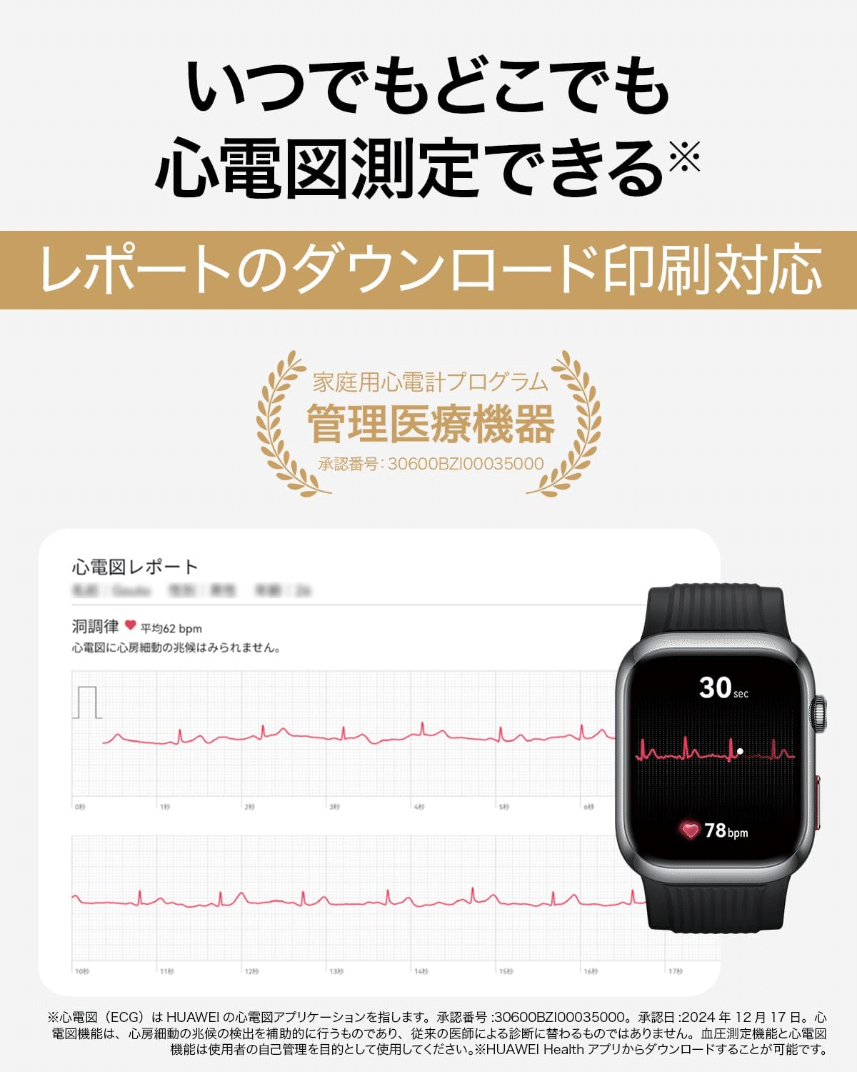 いつでもどこでも心電図測定できる – HUAWEI WATCH D2 ブラック 血圧測定スマートウォッチ