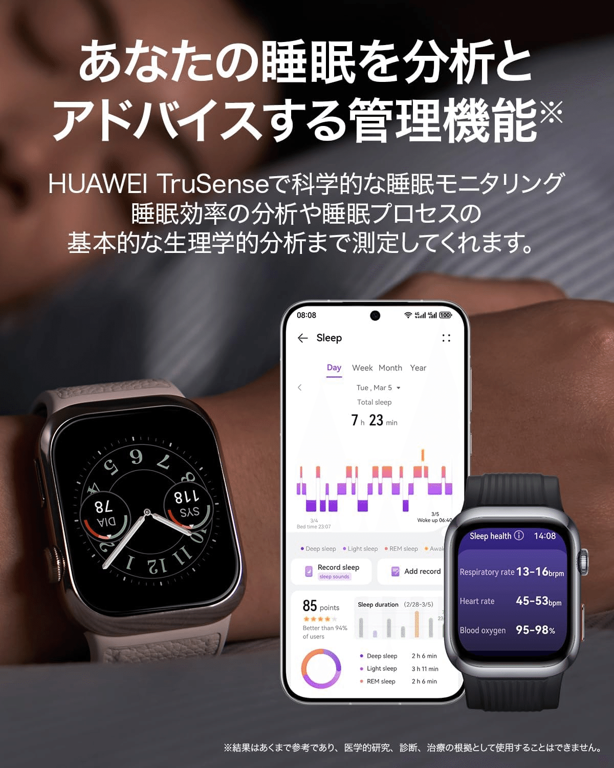 あなたの睡眠を分析とアドバイスする管理機能 – HUAWEI WATCH D2 ブラック 血圧測定スマートウォッチ