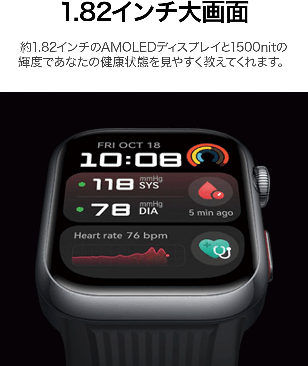 1.82インチ大画面 – HUAWEI WATCH D2 ブラック 血圧測定スマートウォッチ
