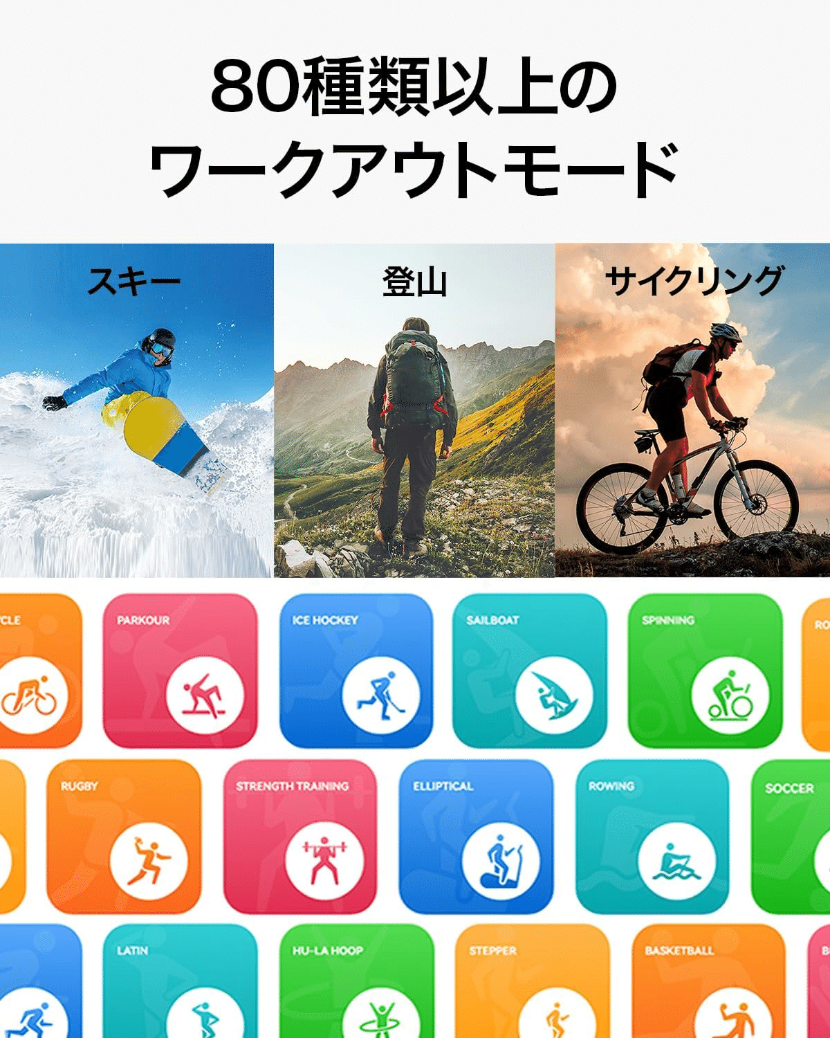 80種類以上のワークアウトモード – HUAWEI WATCH D2 ブラック 血圧測定スマートウォッチ