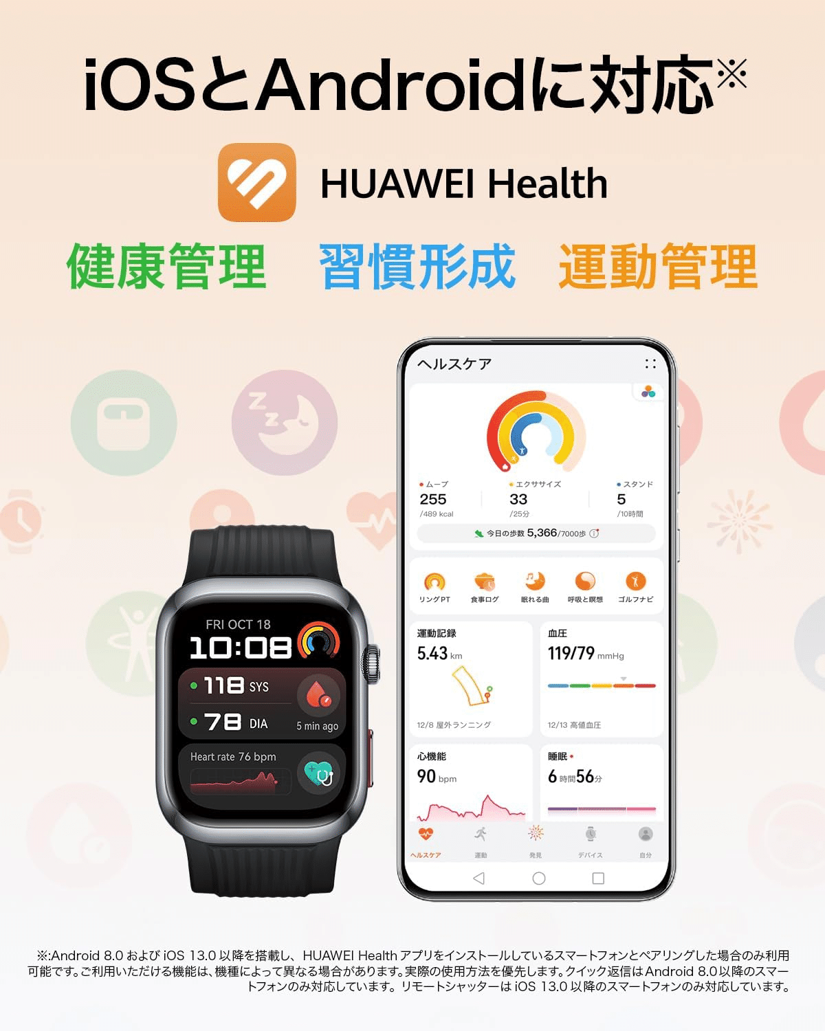iOSとAndroidに対応 – HUAWEI WATCH D2 ブラック 血圧測定スマートウォッチ