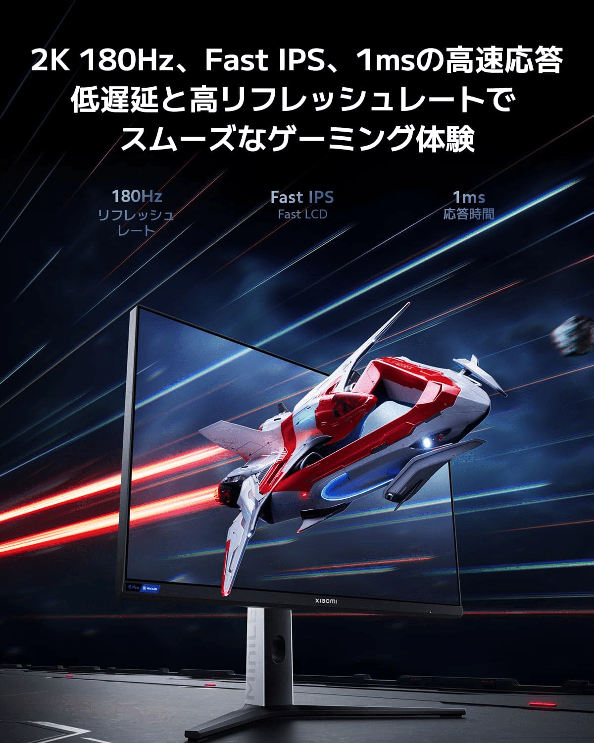 2K 180Hz、Fast IPS、1msの高速応答 低遅延と高リフレッシュレートでスムーズなゲーミング体験 – Xiaomi モニター G Pro 27i 27インチ
