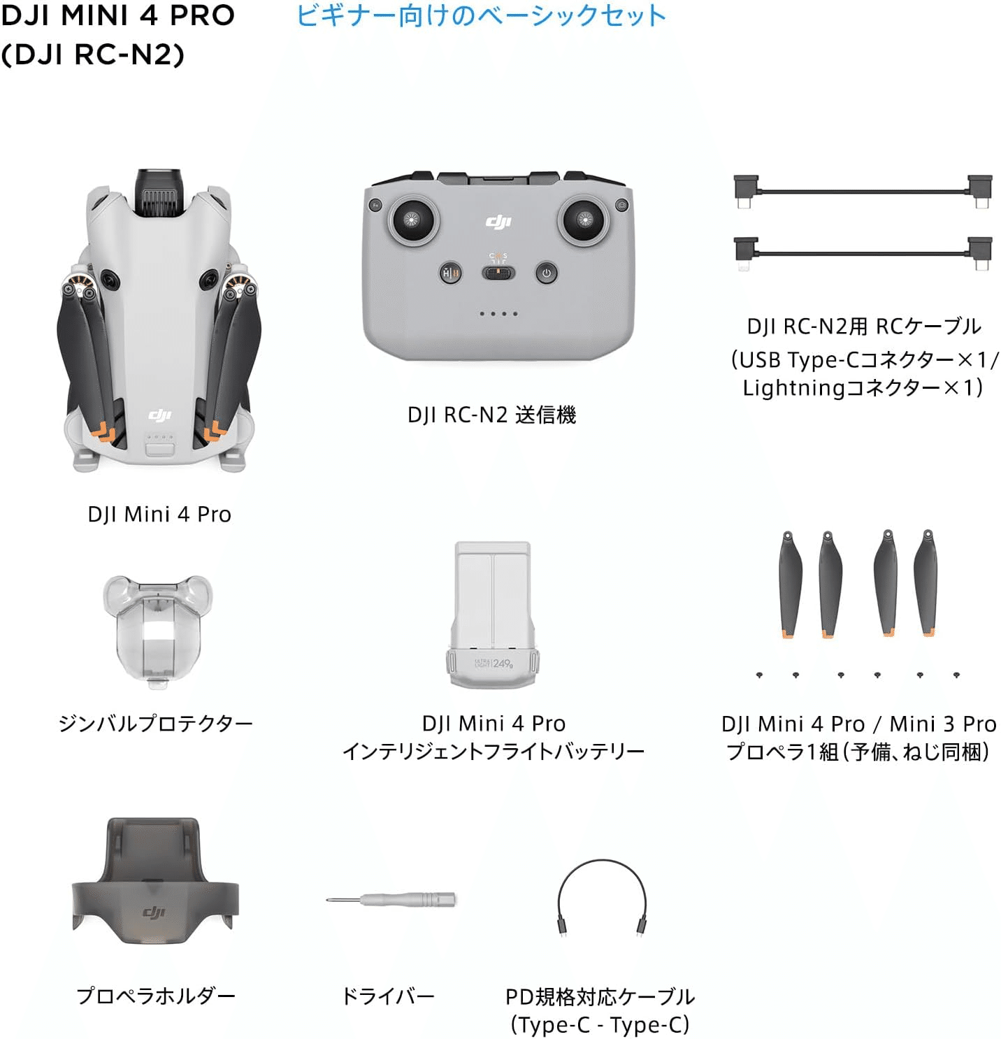 Title DJI ドローン Mini 4 Pro(DJI RC-N2付属)【Remote ID対応】空撮 小型 4K HDR動画撮影対応 折り畳み式 ミニドローン カメラ付き 軽量249 g未満 飛行時間34分 最大映像伝送距離20 km(日本:10 km)賠償責任保険1年無償付き 2025年5月前に生産した製品