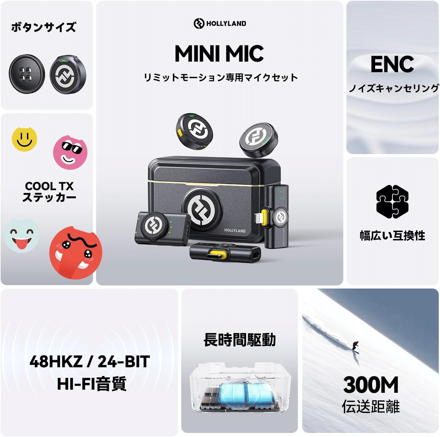 Hollyland Lark M2 Comboは、Vlogや配信に最適な超軽量ワイヤレスマイク。9gのピンマイクで目立たず、300mの転送距離で高音質を実現。48kHz/24Bitでプロ級の録音を!