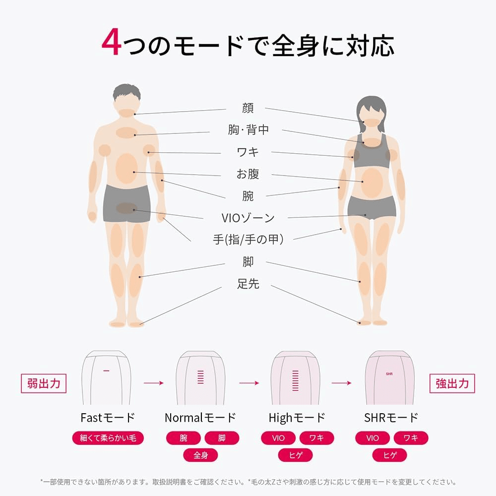 照射モード: ファストモード、ノーマルモード、ハイモード、SHRモード
