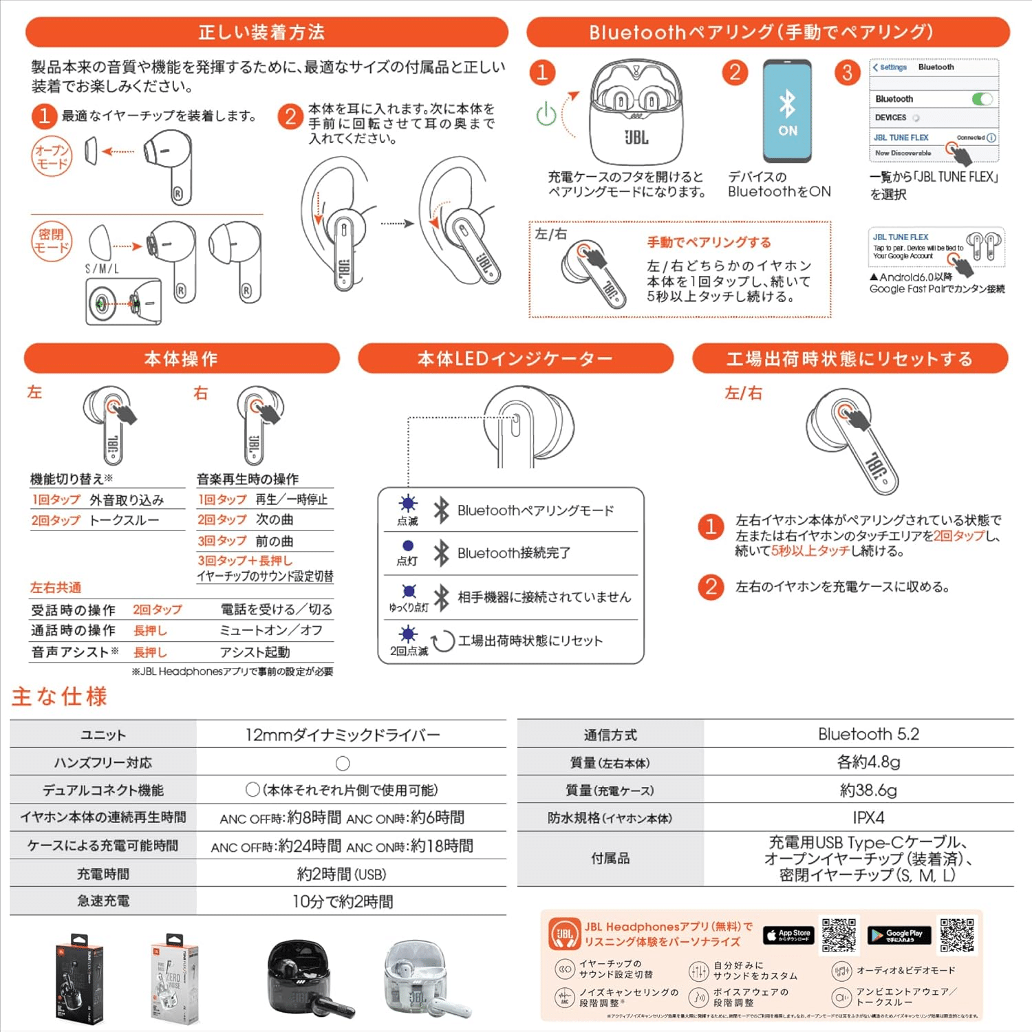 Title JBL TUNE FLEX GHOST ワイヤレスイヤホン bluetooth 2ウェイ装着/ノイズキャンセリング/IPX4/ホワイト/JBLTFLEXGWHT