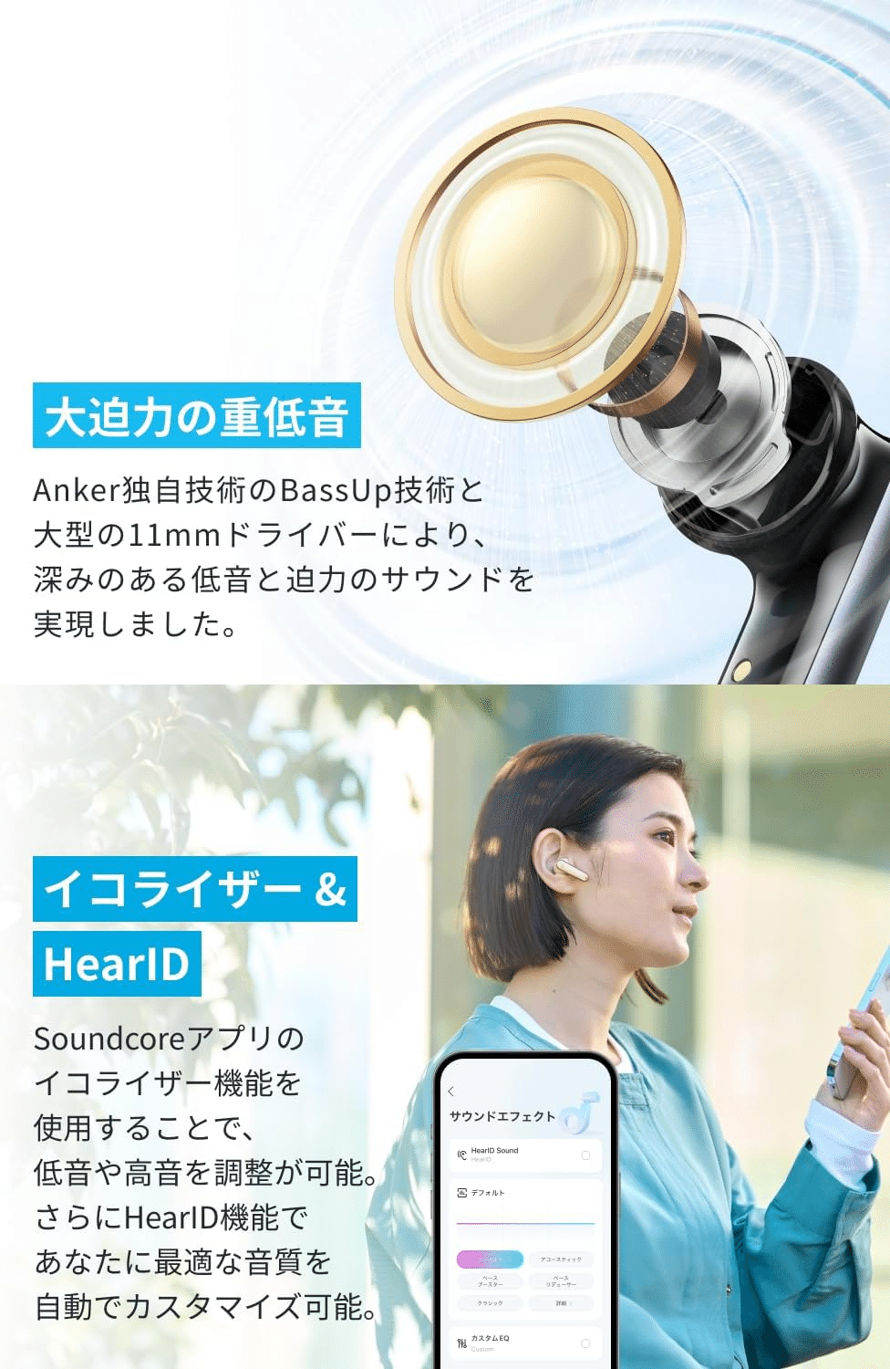 アプリ対応: Soundcoreアプリ(EQカスタマイズ、HearID)