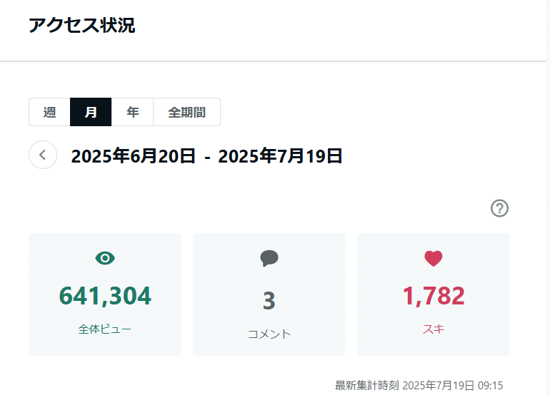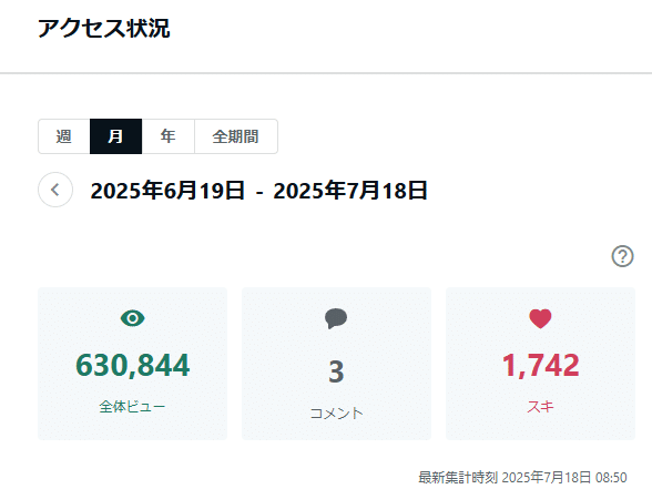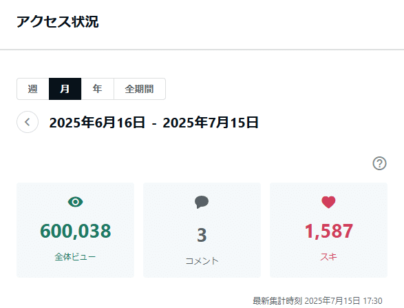 過去30日間のアクセス数が、61万PVに更新されました!✨