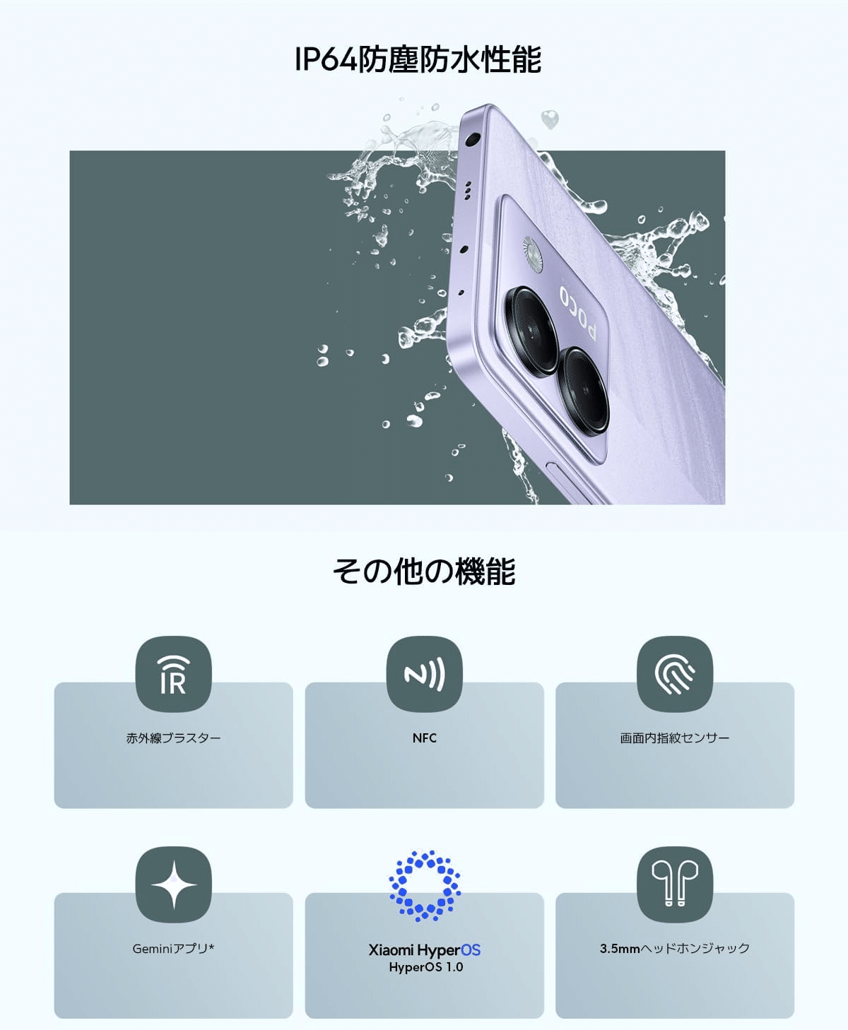IP64防塵防水性能 – Xiaomi POCO M7 Pro 5G 8GB+256GB グリーン