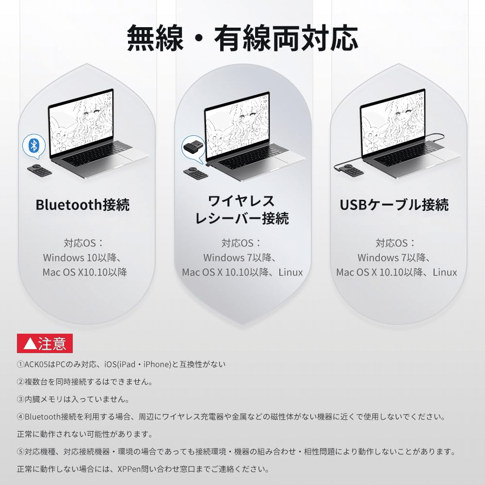 Bluethooth 5.0 無限の創造性 – XPPen ACK05 左手デバイス Bluetooth対応