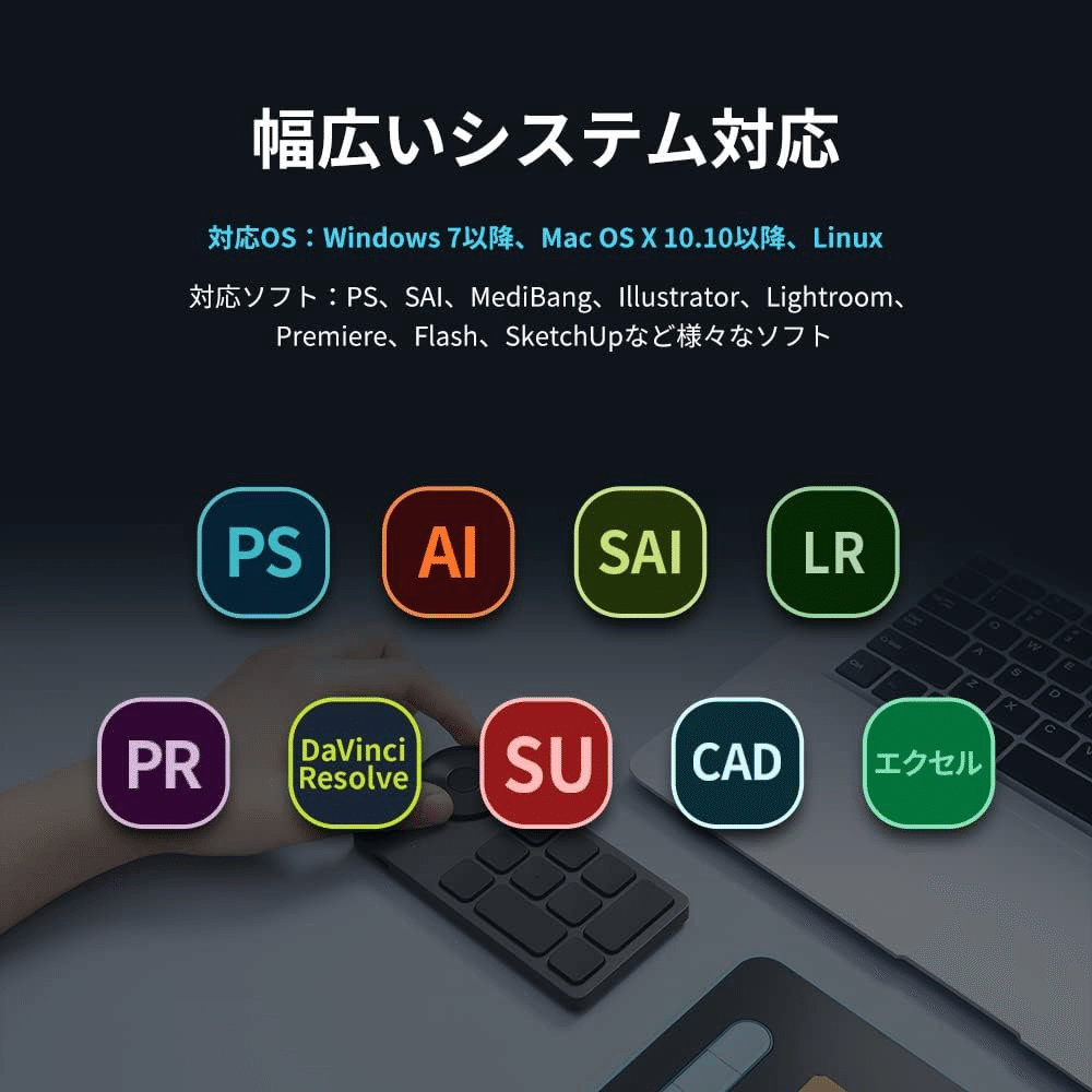 • 対応ソフトウェア: Photoshop、Illustrator、Clip Studio Paint、Premiere、Excelなど