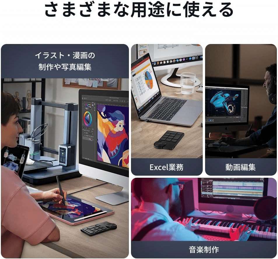 さまざまな用途に使える – XPPen ACK05 左手デバイス Bluetooth対応