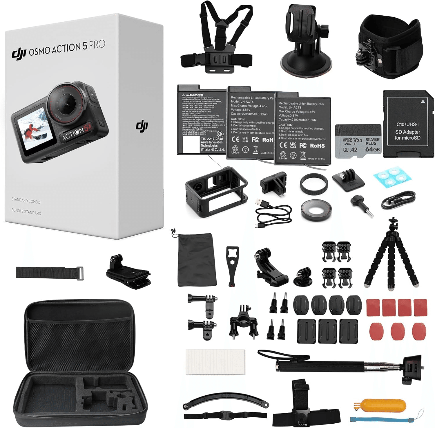 Title DJI Osmo Action 5 Pro 標準コンボ、58ピースアクセサリーキットと予備バッテリー2個+64GBカード付き – 1/1.3インチセンサー付き防水アクションカメラ、4K/120fpsビデオ、アクションカメラ4K、スポーツに最適