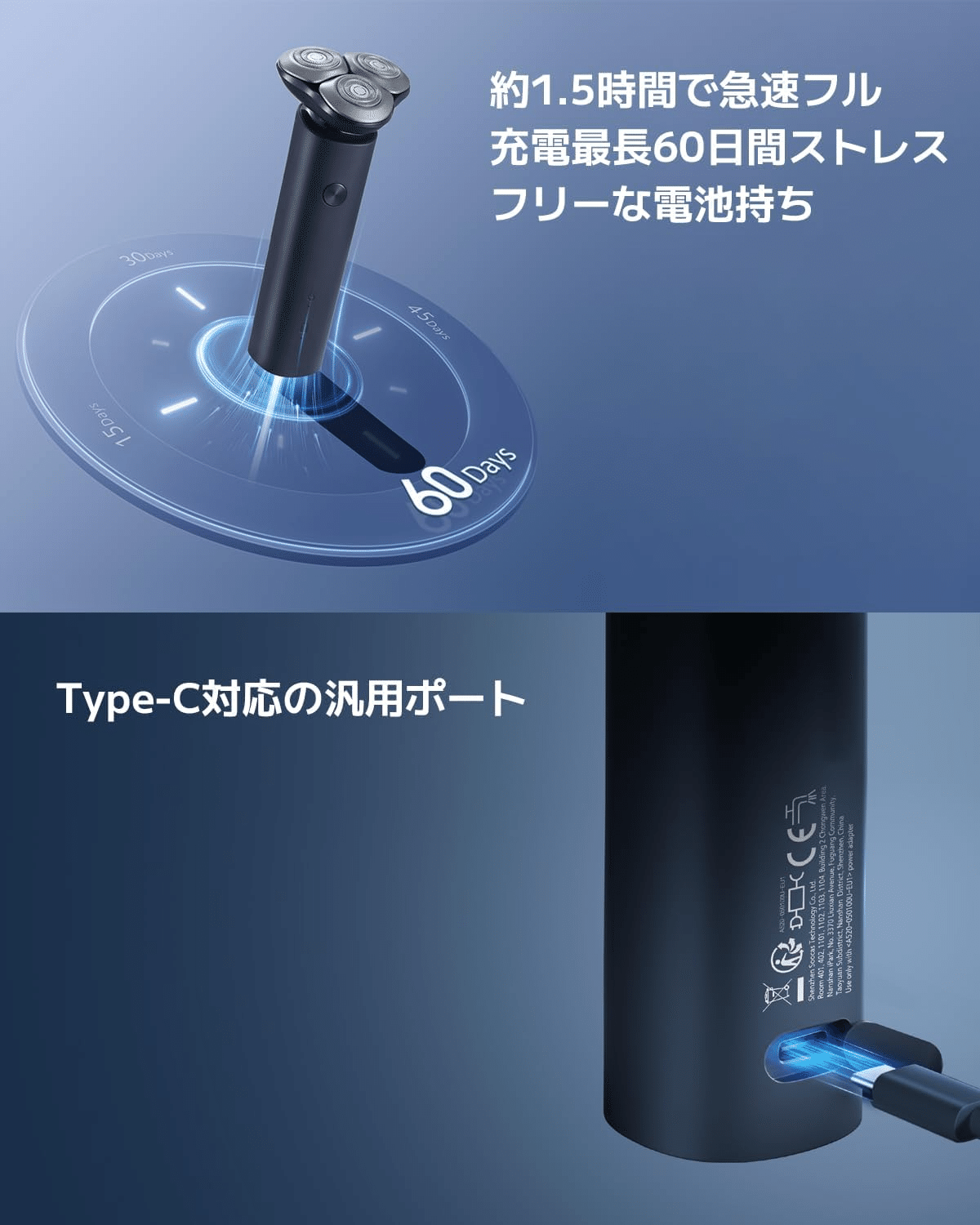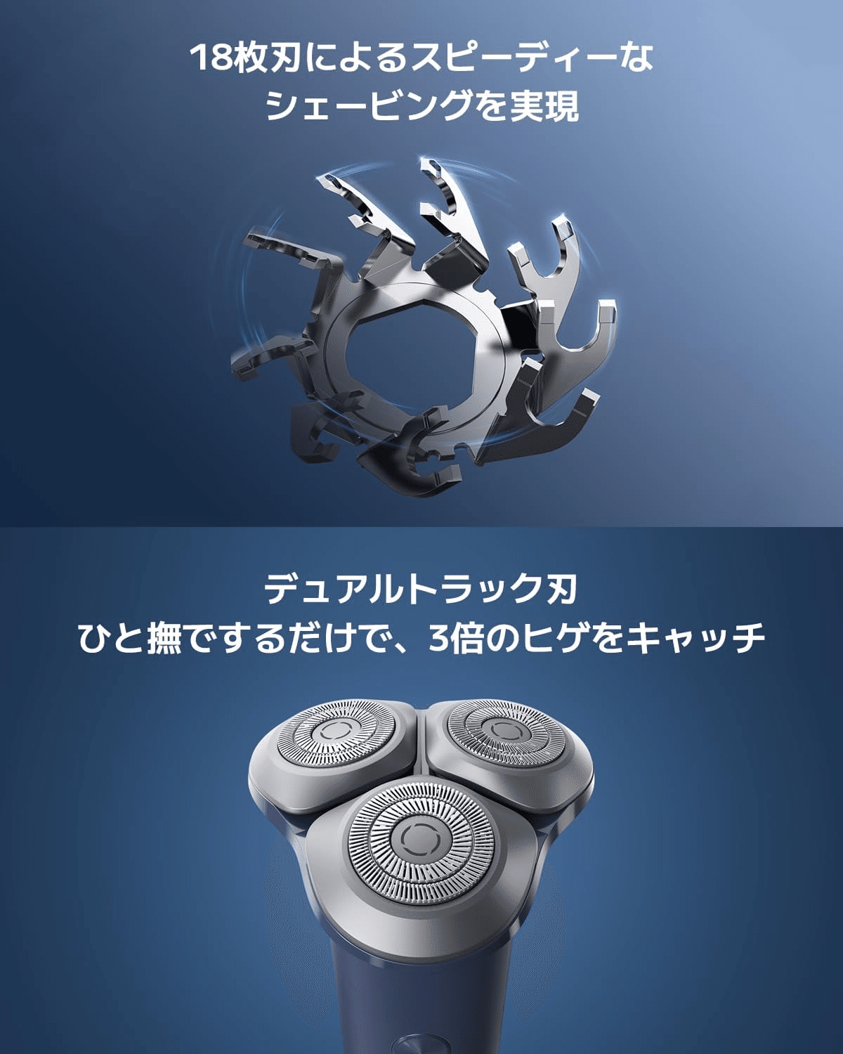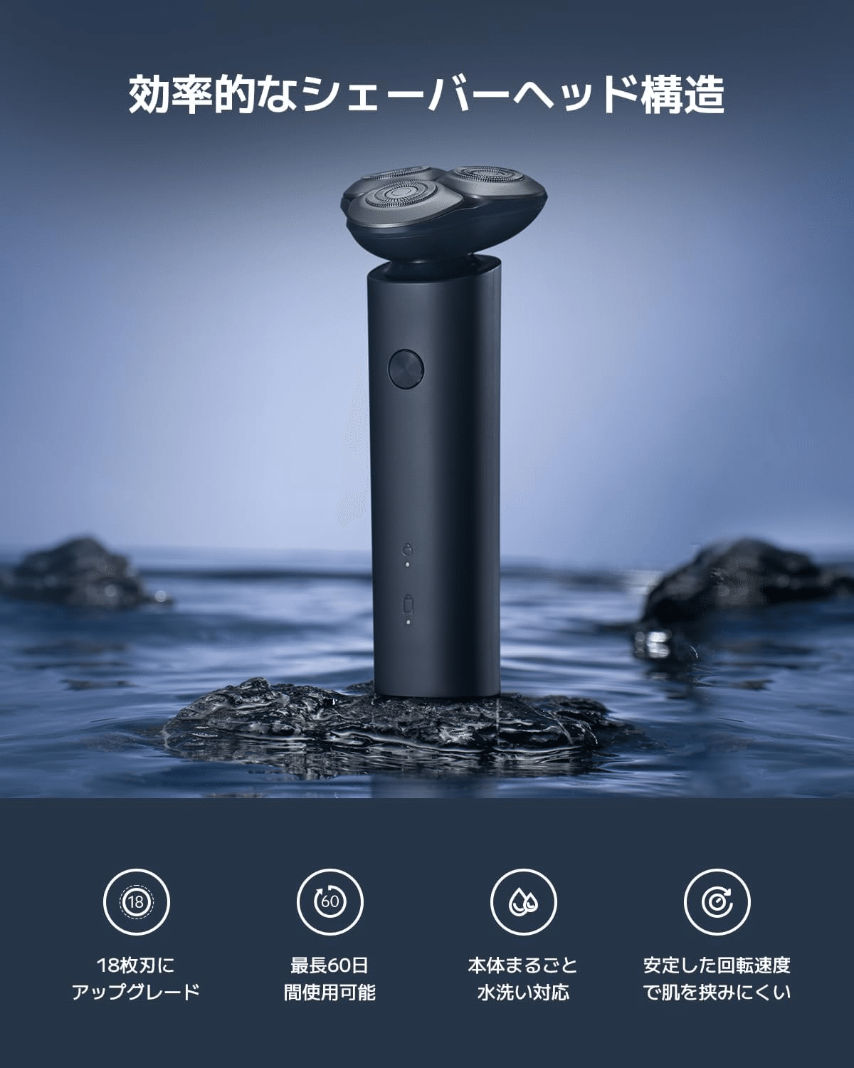 Title xiaomi電動メンズシェーバー S101 18枚刃 早剃りデュアルトラック刃 3つの独立フローティングヘッド 最長60日間使用可能 約1.5時間で急速フル充電 Type-C対応 IPX7防水対応 本体まるごと水洗い対応