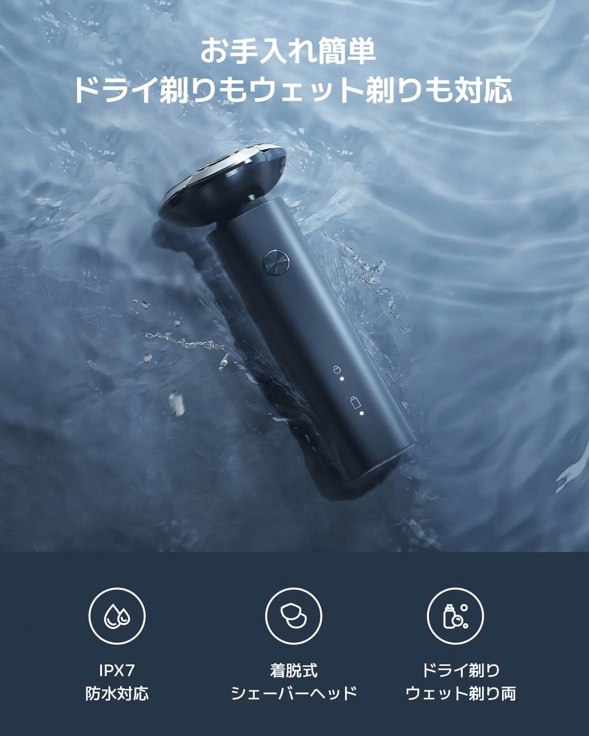 Xiaomi 電動メンズシェーバー S101は、18枚刃のデュアルトラック刃と3つの独立フローティングヘッドにより、スピーディーで深剃りを実現する優れたシェーバーです。顔の輪郭にしっかりフィットし、剃りにくい部分も逃さずキャッチ。IPX7防水対応で水洗いが可能なので、衛生的に保ちたい方に最適です。約1.5時間の急速充電で最長60日間使用できるバッテリー性能は、頻繁な充電が面倒な方にもぴったり。Type-Cポート採用で現代的な利便性も兼ね備えています。スマートスピードコントロールにより、低バッテリー時でも安定したパフォーマンスを発揮。ネイビーブルーのデザインは洗練されており、価格も手頃でコスパが高い点が魅力。旅行や出張にも対応するトラベルロック機能付きで、幅広いシーンで活躍します。初めて電動シェーバーを試す方から、買い替えを検討している方まで、満足度の高い選択肢と言えるでしょう。
