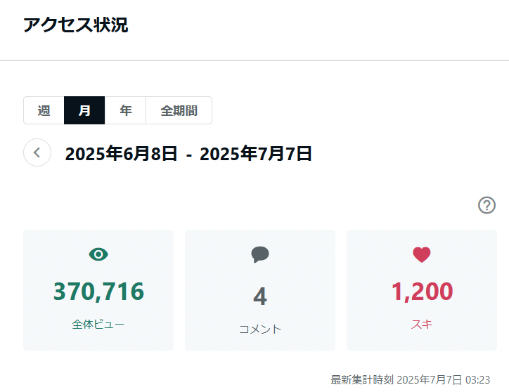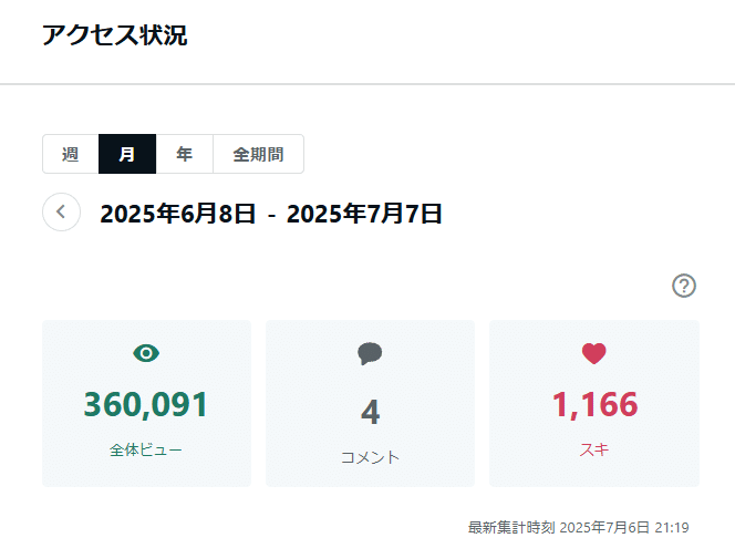 【35万PV】 2025年6月に本格始動したnoteは月間アクセス数(過去30日)が35万pvを超えました✨