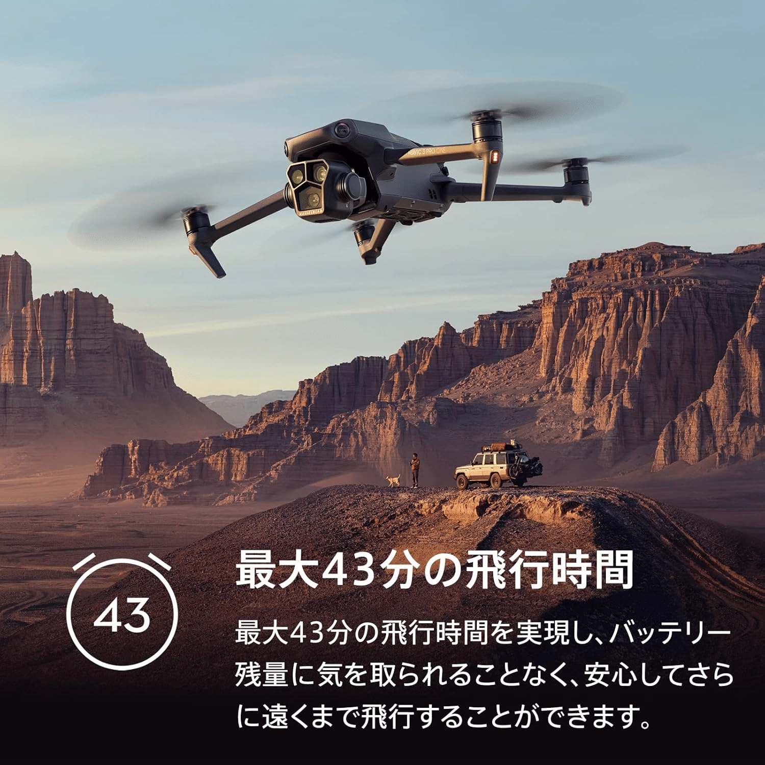 DJI Mavic 3 Pro Fly Moreコンボは、プロ級の空撮を可能にするフラッグシップドローンです。4/3型CMOS Hasselbladカメラとデュアル望遠カメラを搭載した3眼カメラシステムが特徴で、豊かな映像表現を実現します。DJI RC Proの高輝度スクリーンで操作性も向上。最大43分の飛行時間や全方向障害物検知、リモートID対応など、プロから趣味の方まで幅広く対応する高性能モデルです。このコンボには、バッテリー3個、充電ハブ、NDフィルターセットが同梱され、長時間の撮影にも最適です。創造性を最大限に引き出す一台を紹介します。