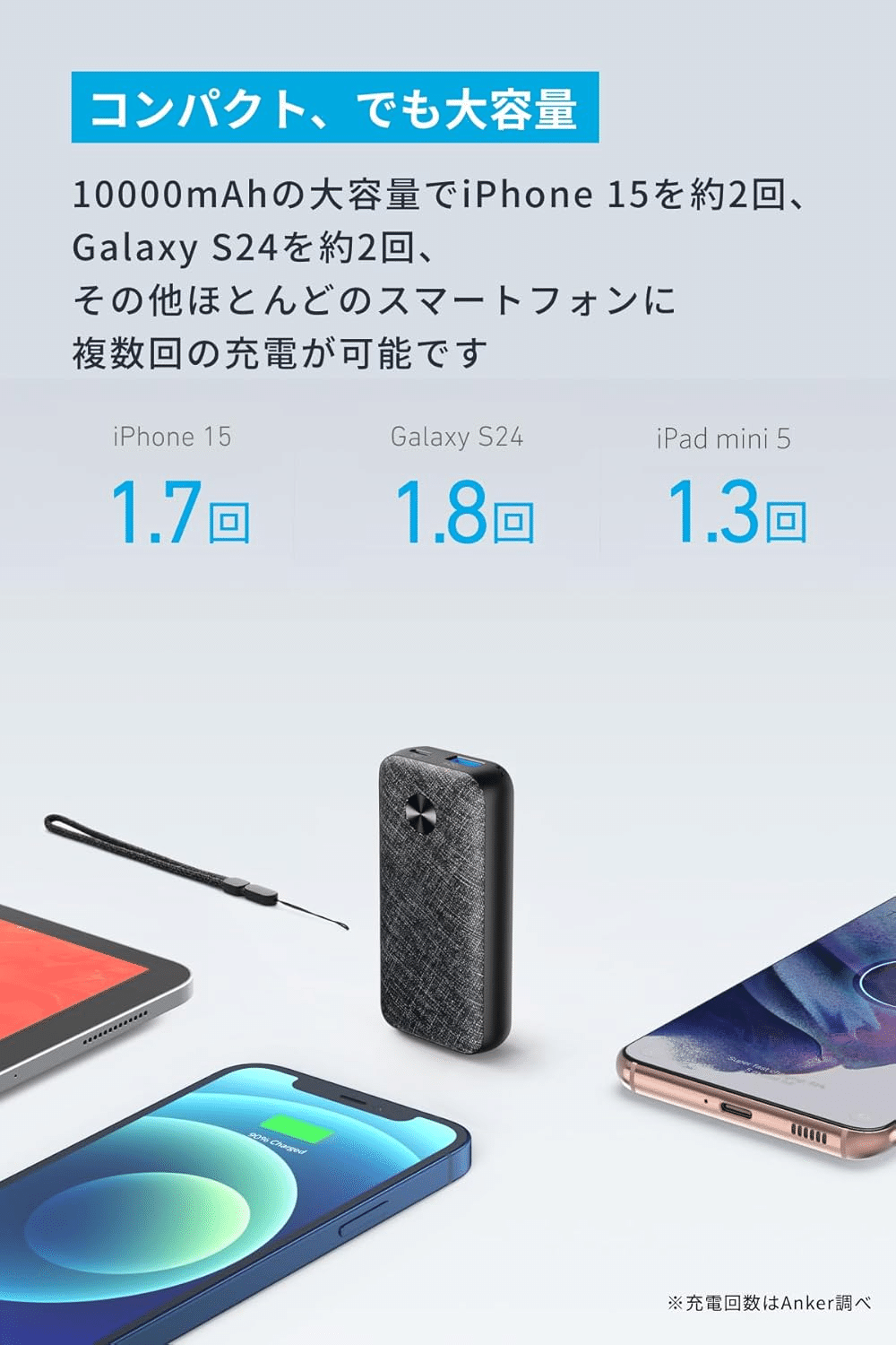 • 充電回数 スマートフォン約2回、タブレット約1回