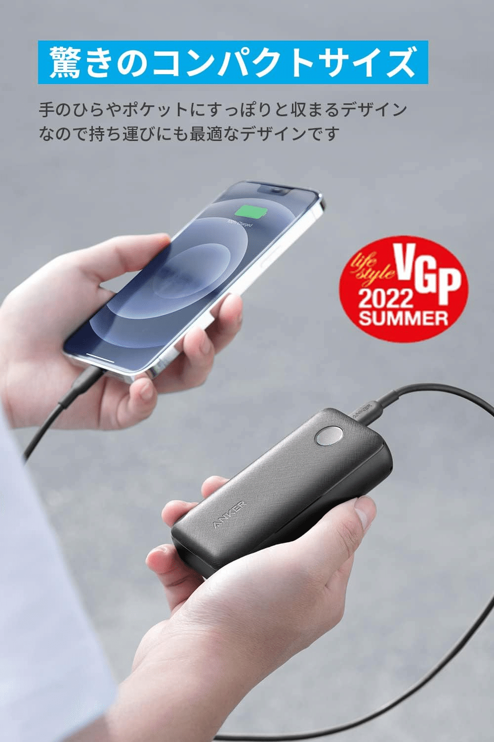 このサイズで10000mAhは驚き!ポケットにすっぽり入るから持ち運びが楽
