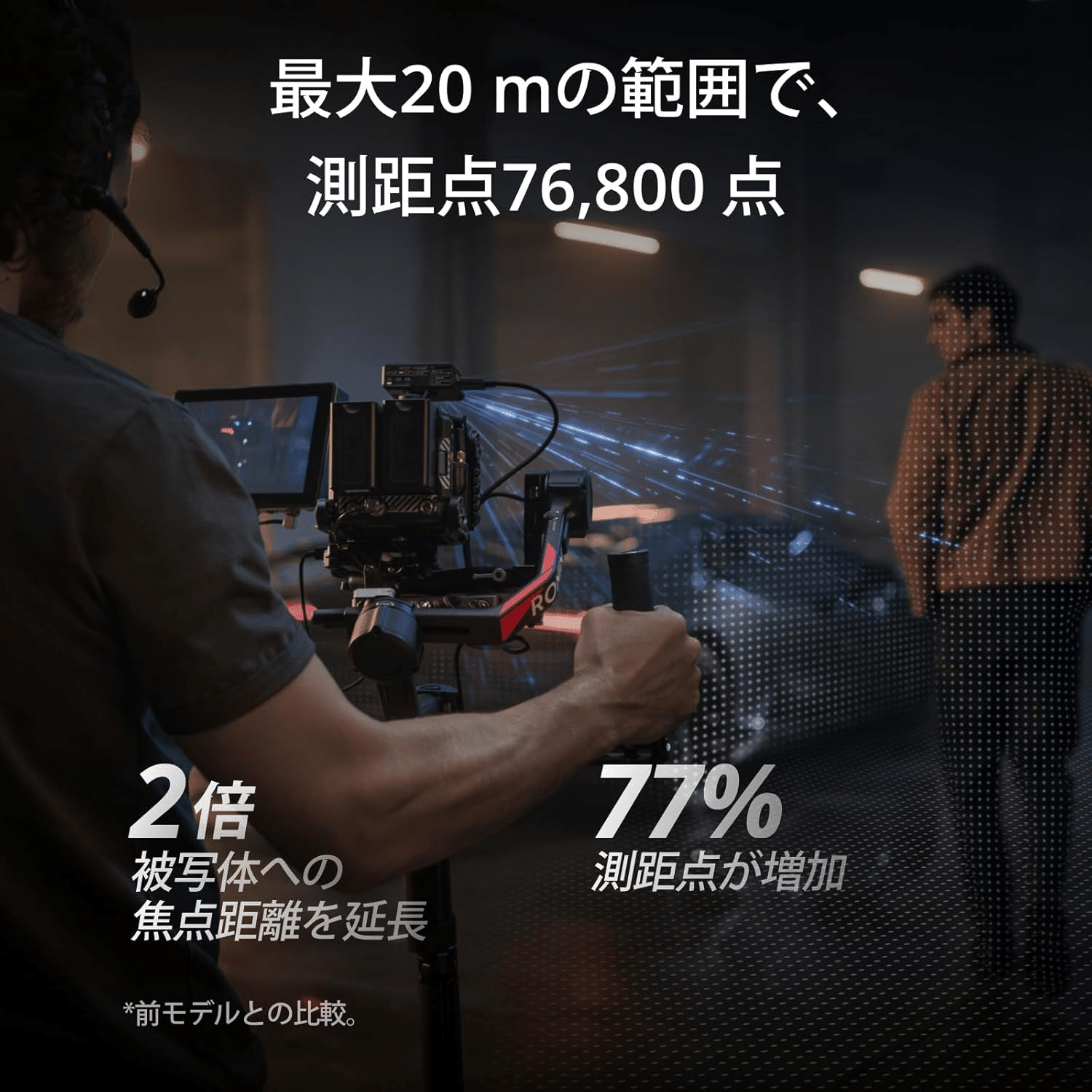 最大20mの範囲で、測距点76,800点 – DJI Focus Pro クリエイター コンボ AMFレンズ制御