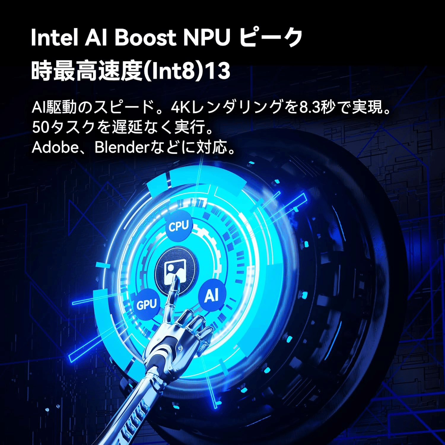 Intel AI Boost NPU ピーク時最高速度(Int8)13 – GEEKOM IT15 Ultra AI ミニPC 2025モデル