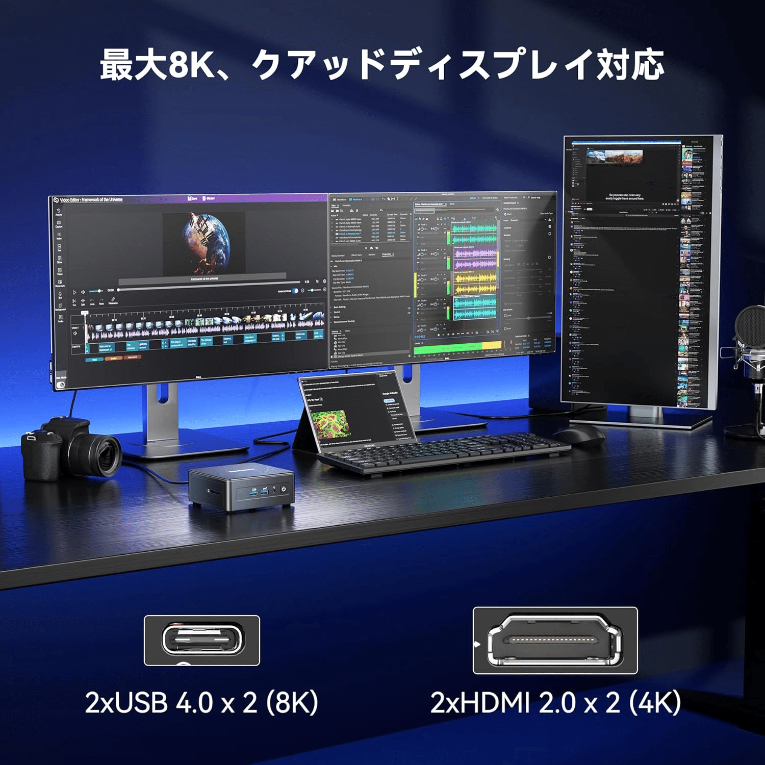 最大8K、クアッドディスプレイ対応 – GEEKOM IT15 Ultra AI ミニPC 2025モデル