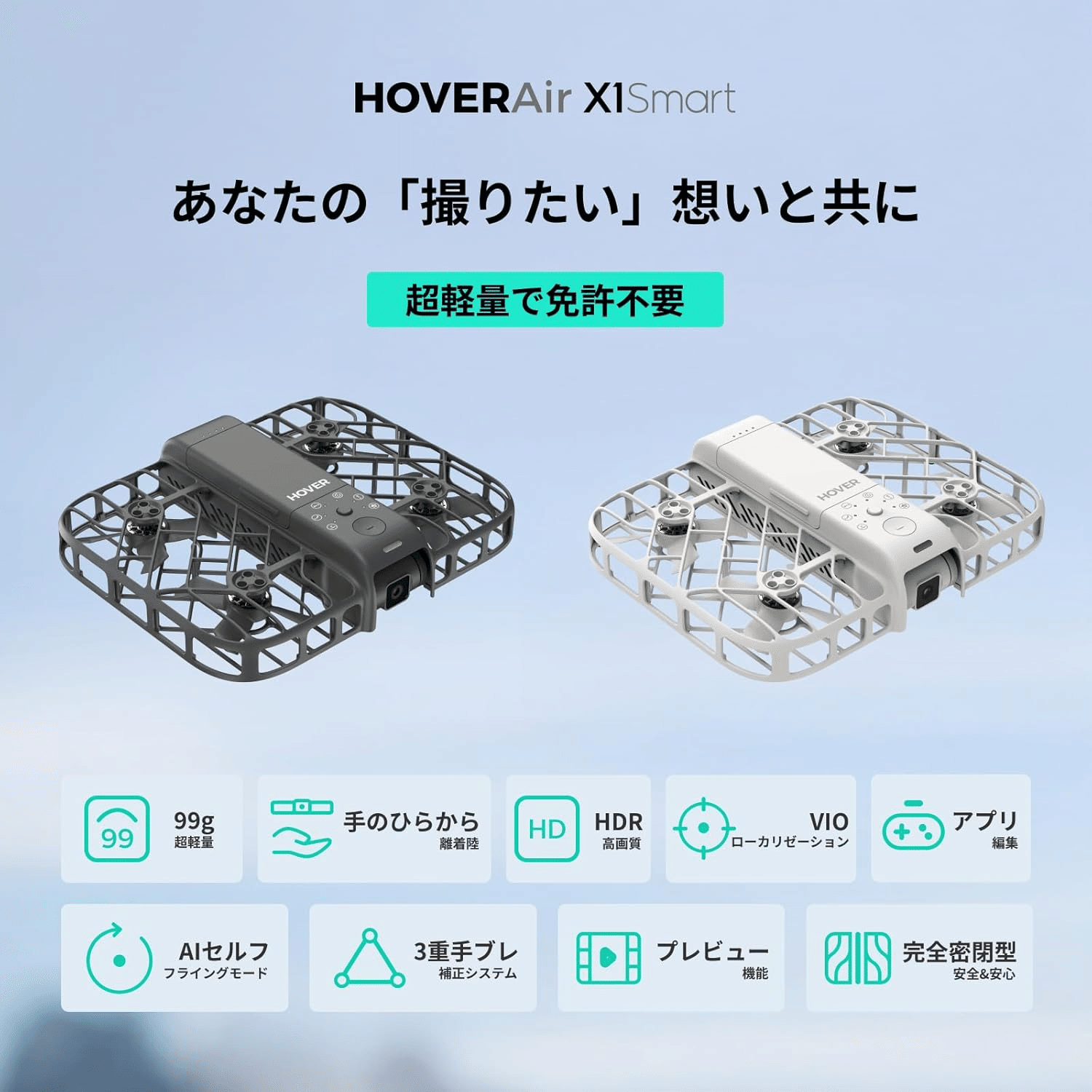 HOVERAir X1 Smart AI飛行カメラ ドローン 100g未満 2.7K HDR