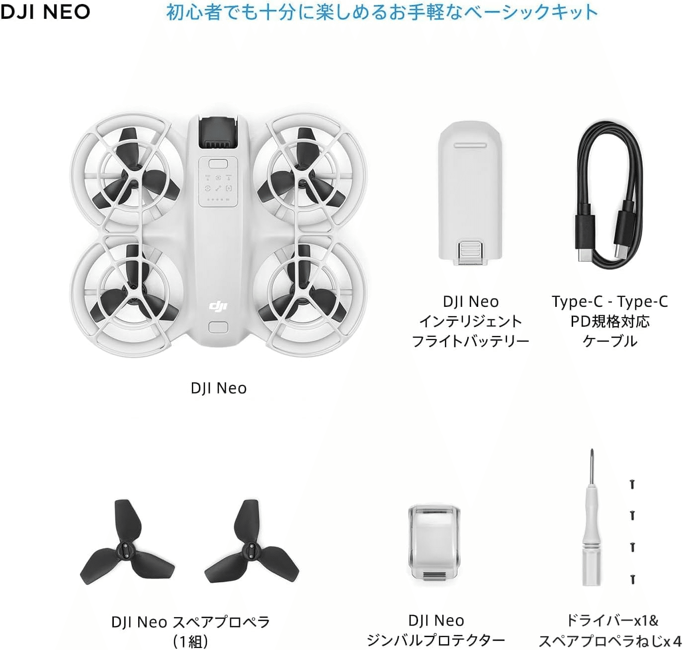 セット内容 – DJI Neo 4K UHDカメラ搭載 135g軽量ドローン