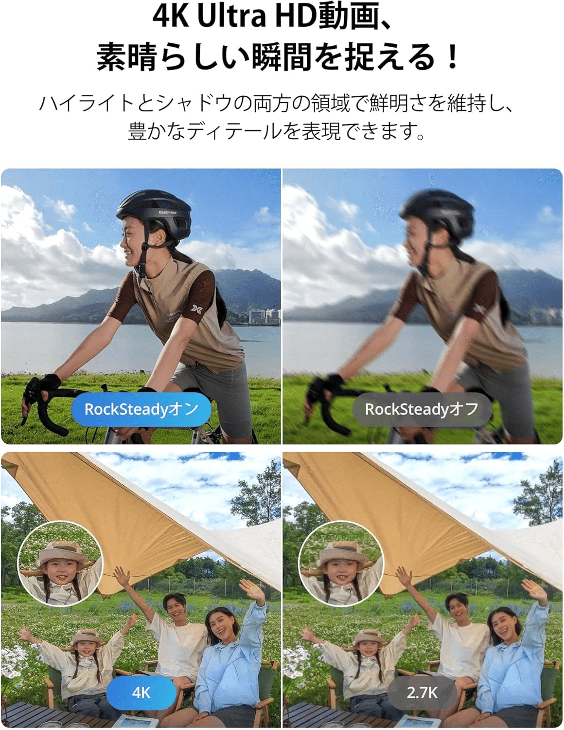 • 映像安定化: RockSteadyおよびHorizonBalancing