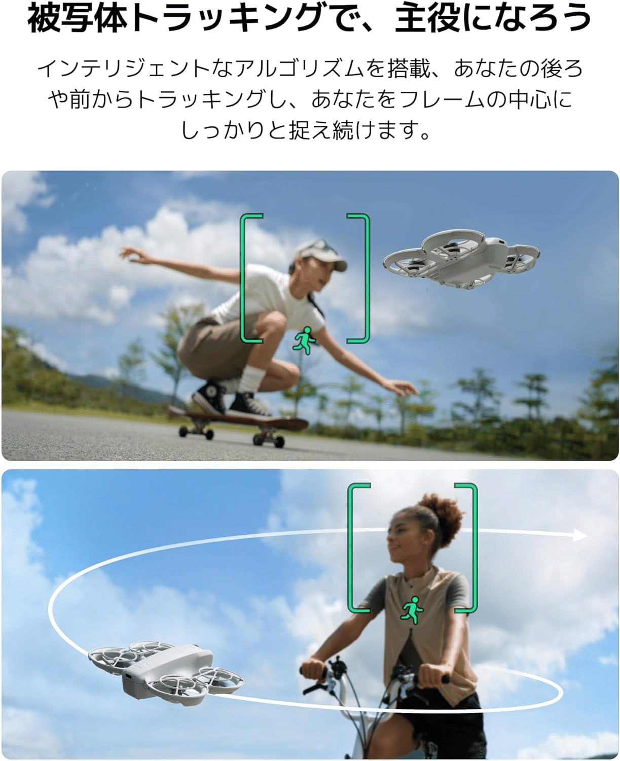 被写体トラッキングで、主役になろう – DJI Neo 4K UHDカメラ搭載 135g軽量ドローン