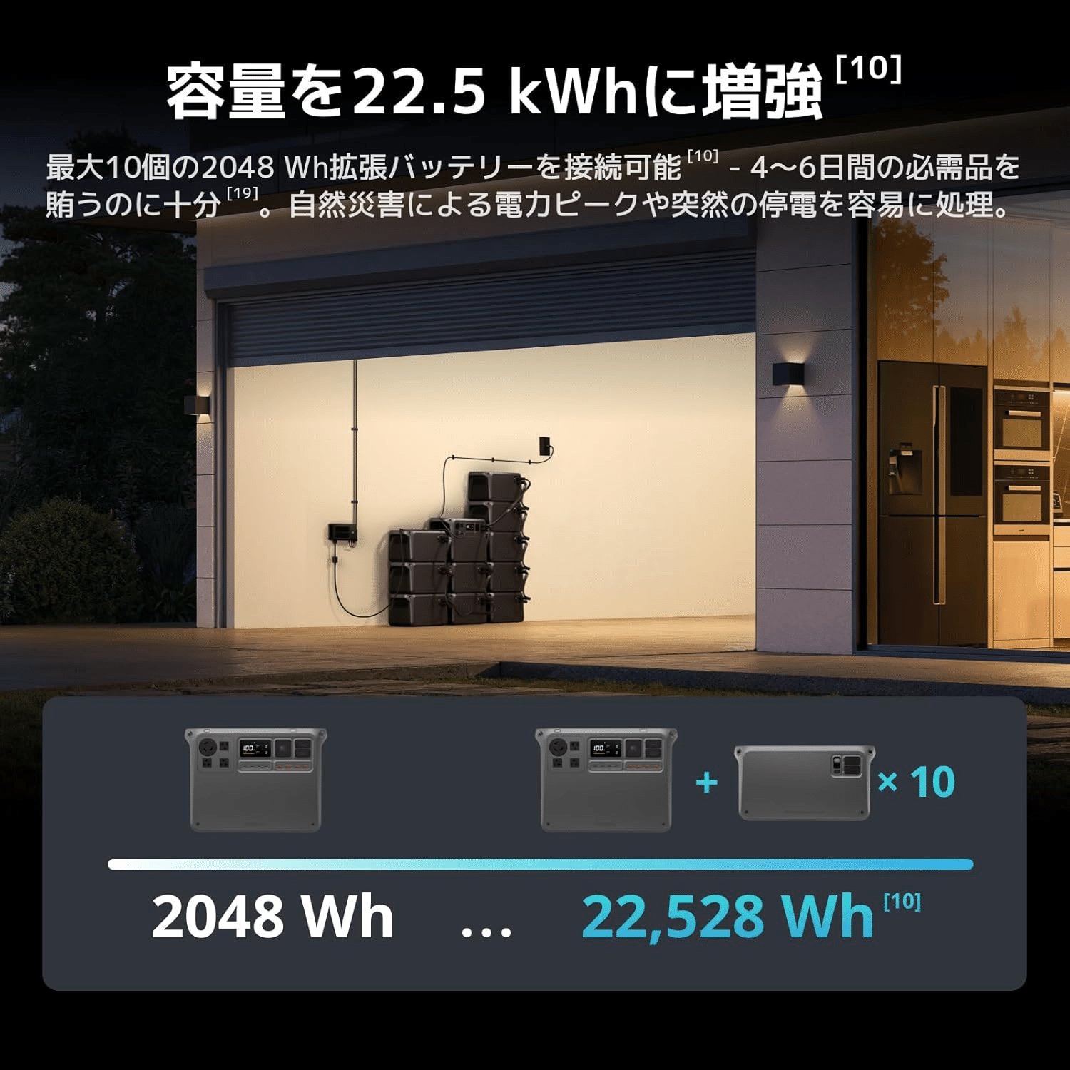 DJI Power 2000は、2048Whの大容量と2700Wの高出力で、家庭からアウトドアまで幅広いニーズに応えるポータブル電源です。急速充電や静音設計、アプリでの遠隔操作など、使いやすさを追求した機能が満載。最大22.5kWhまで拡張可能な柔軟性は、長期間のオフグリッド生活や映像制作にも対応します。リン酸鉄リチウムバッテリー採用で安全性と耐久性が高く、4000サイクル後も70%以上の容量を維持。コンパクトなデザインながら、複数のポートで多様なデバイスを同時充電可能です。キャンプや非常時の備えとして、信頼性と実用性を求める方に最適。価格は高めだが、性能と安心感を考慮すれば納得の投資と言えるでしょう。