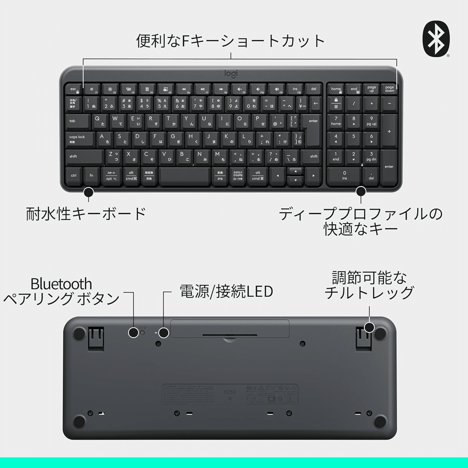 Title 【Amazon.co.jp限定】 ロジクール Bluetooth ワイヤレスマウス キーボード セット MK250GRd テンキー コンパクト 日本語配列 耐水 無線 ワイヤレス MK250 Windows Mac Chrome グラファイト 国内正規品 ※Amazon.co.jp限定 壁紙ダウンロード付き