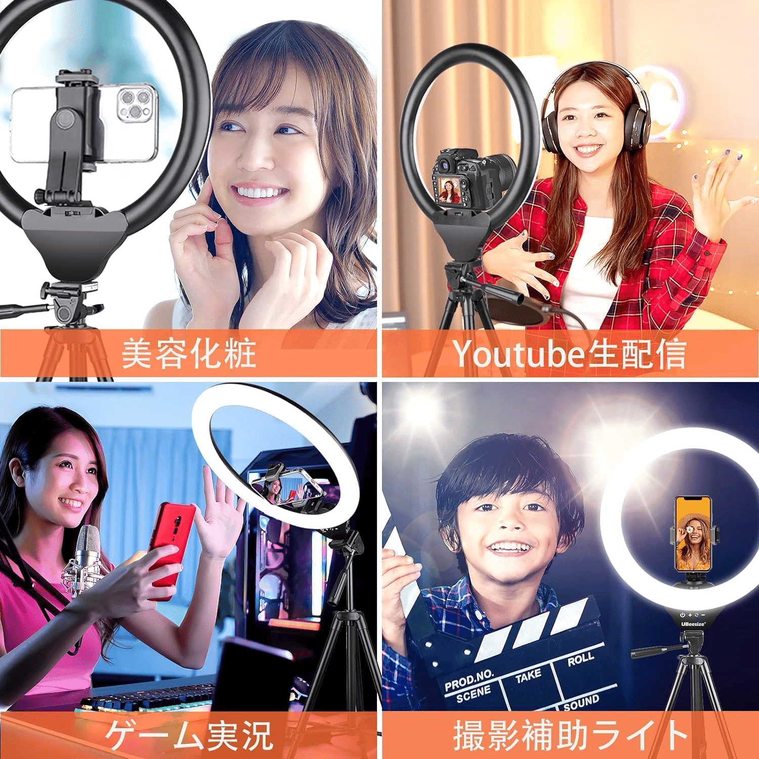 様々な用途 – UBeesize LEDリングライト 10インチ スマホ三脚 127cm (女優ライト)