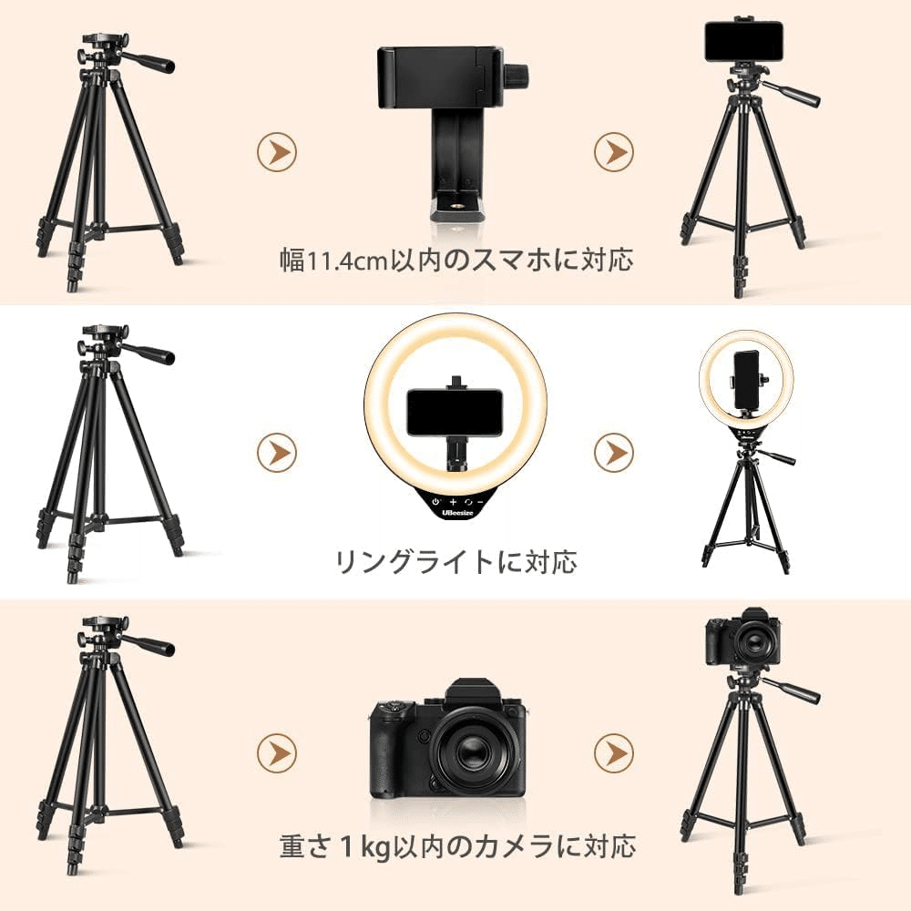 特徴 – UBeesize LEDリングライト 10インチ スマホ三脚 127cm (女優ライト)