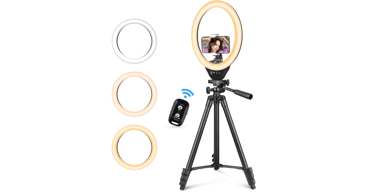 3色モード&10段階明るさ調整可能 – UBeesize LEDリングライト 10インチ スマホ三脚 127cm (女優ライト)