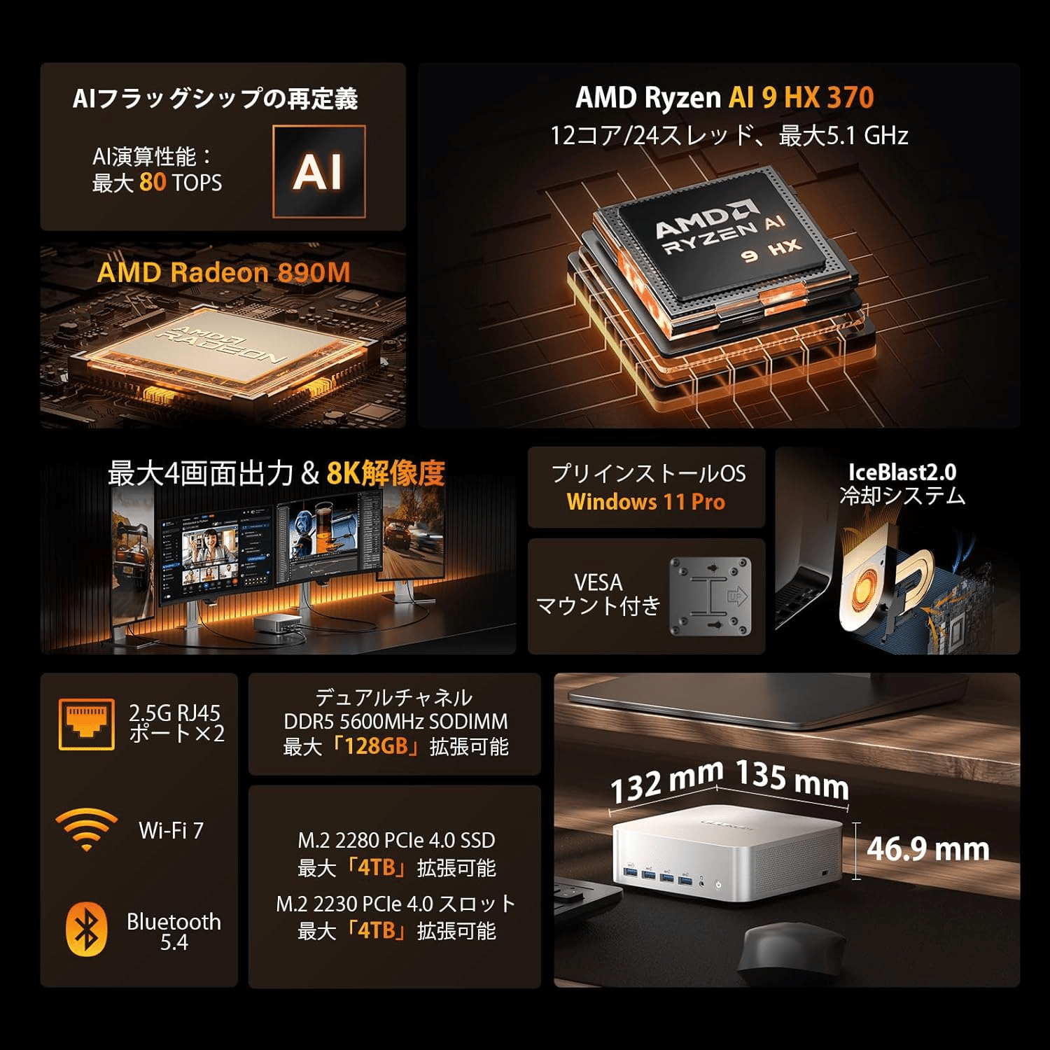 GEEKOM A9 MAX AI ミニPC Ryzen AI 9 HX 370搭載