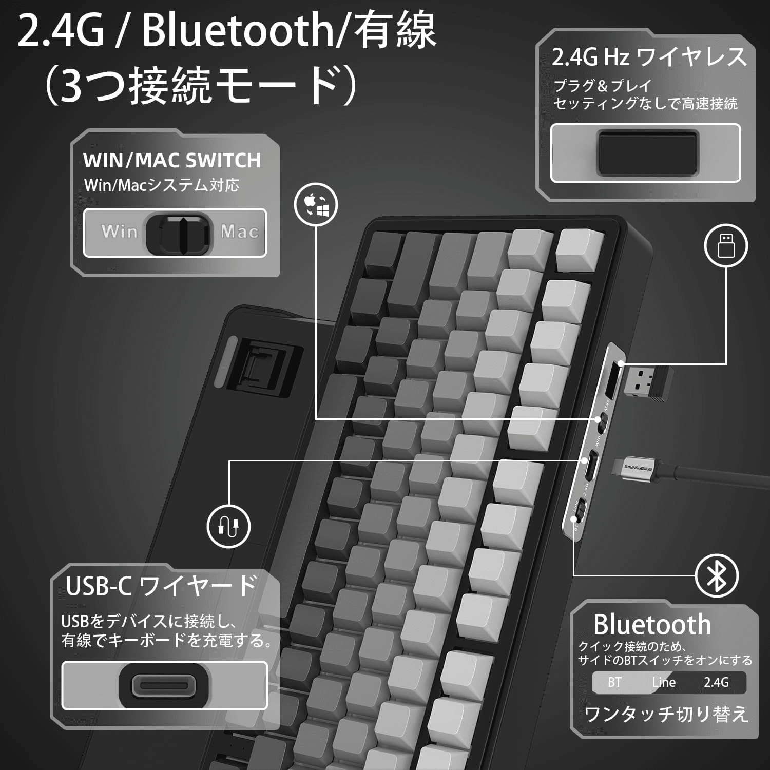 2.4G / Bluetooth / 有線 – ATTACK SHARK X85 月夜 75% ゲーミングキーボード