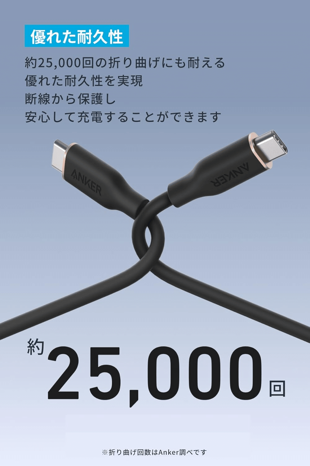 優れた耐久性 – Anker PowerLine III Flow USB-C 1.8m 2本セット